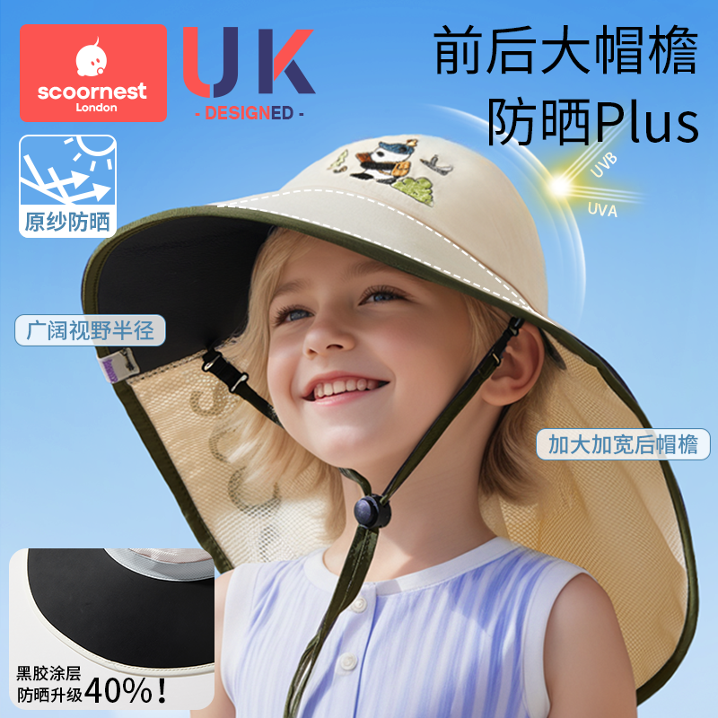 科巢儿童防晒帽防紫外线宝宝遮阳帽男童女童夏空顶太阳帽子大帽檐
