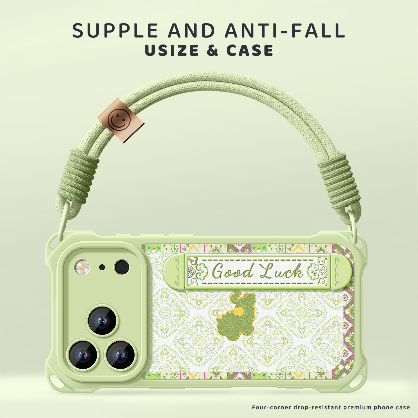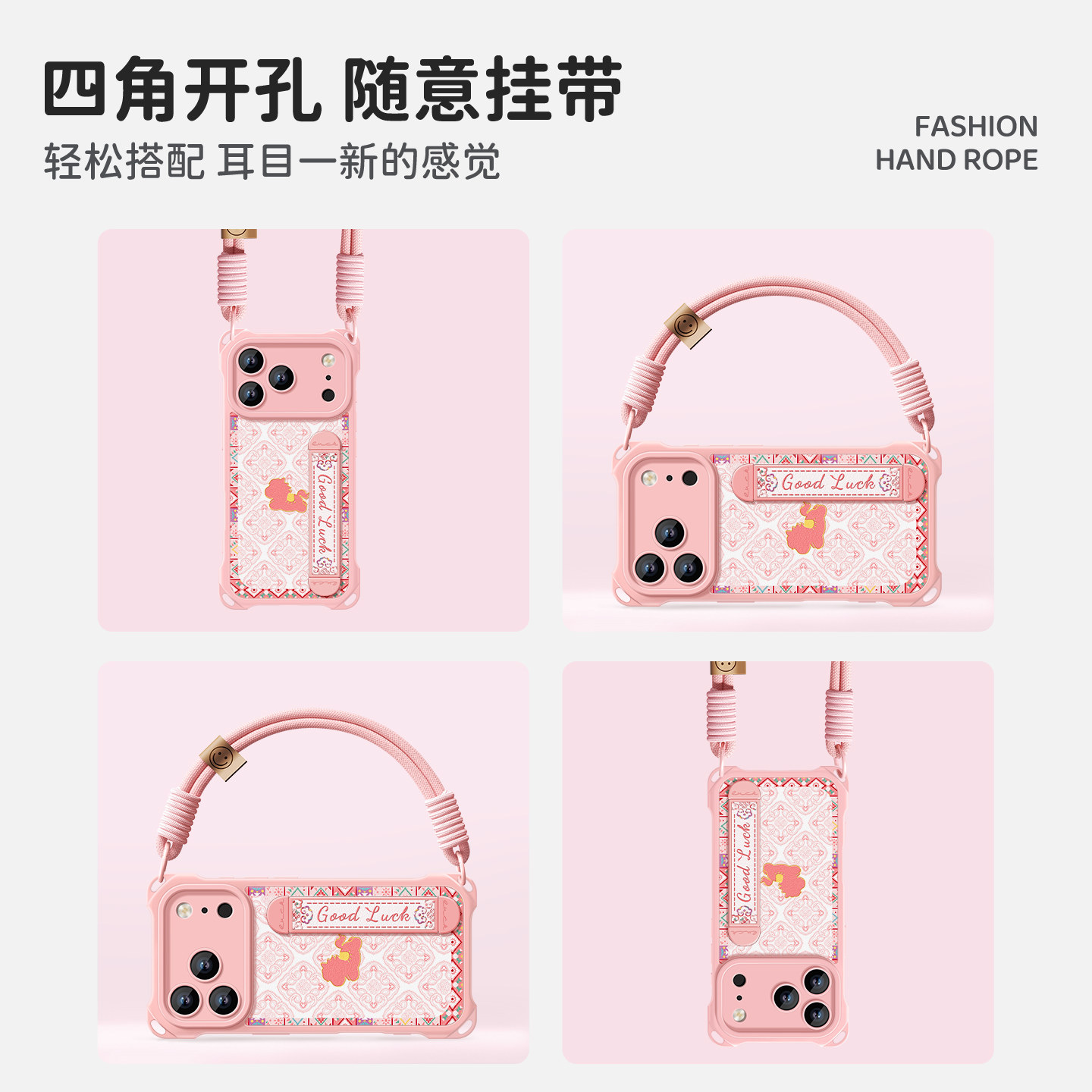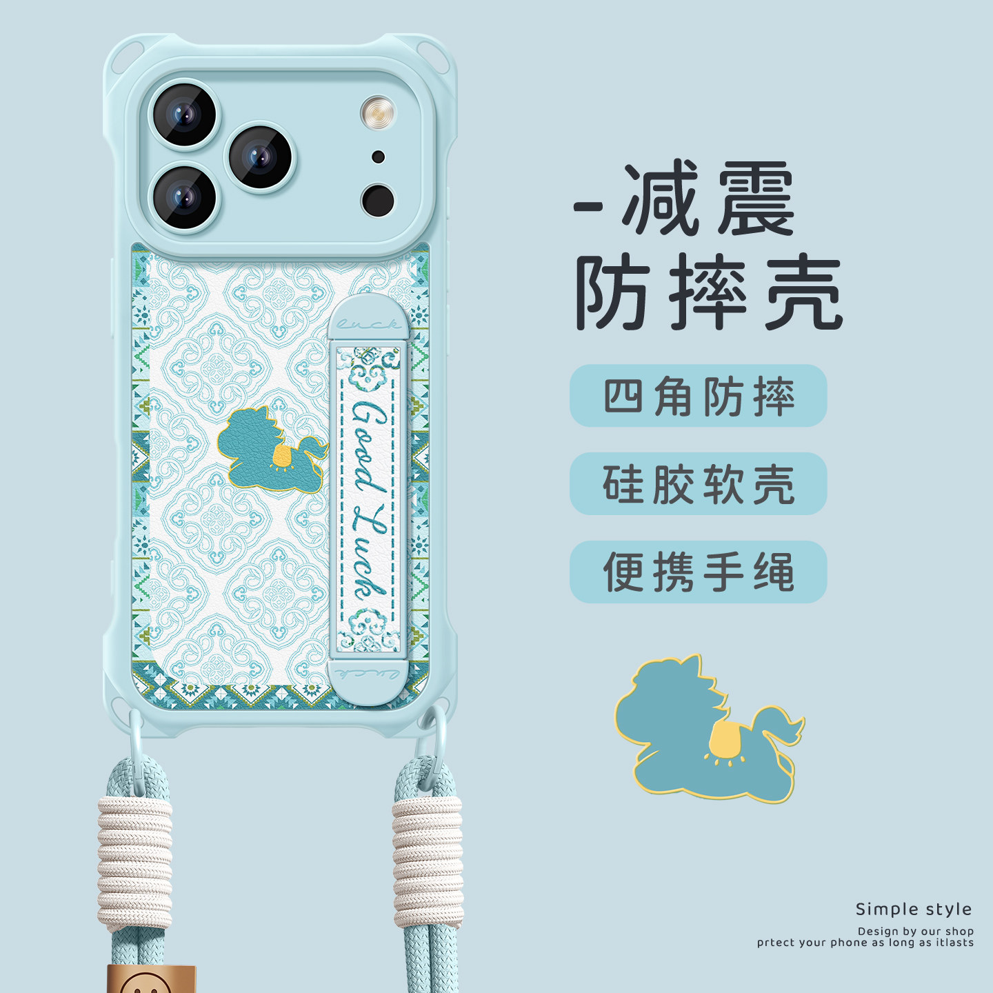 适用苹果17腕带手机壳新款iPhone16保护套17pro四角防摔14女15可挂手绳手链民族风小马14promax硅胶15pro高级