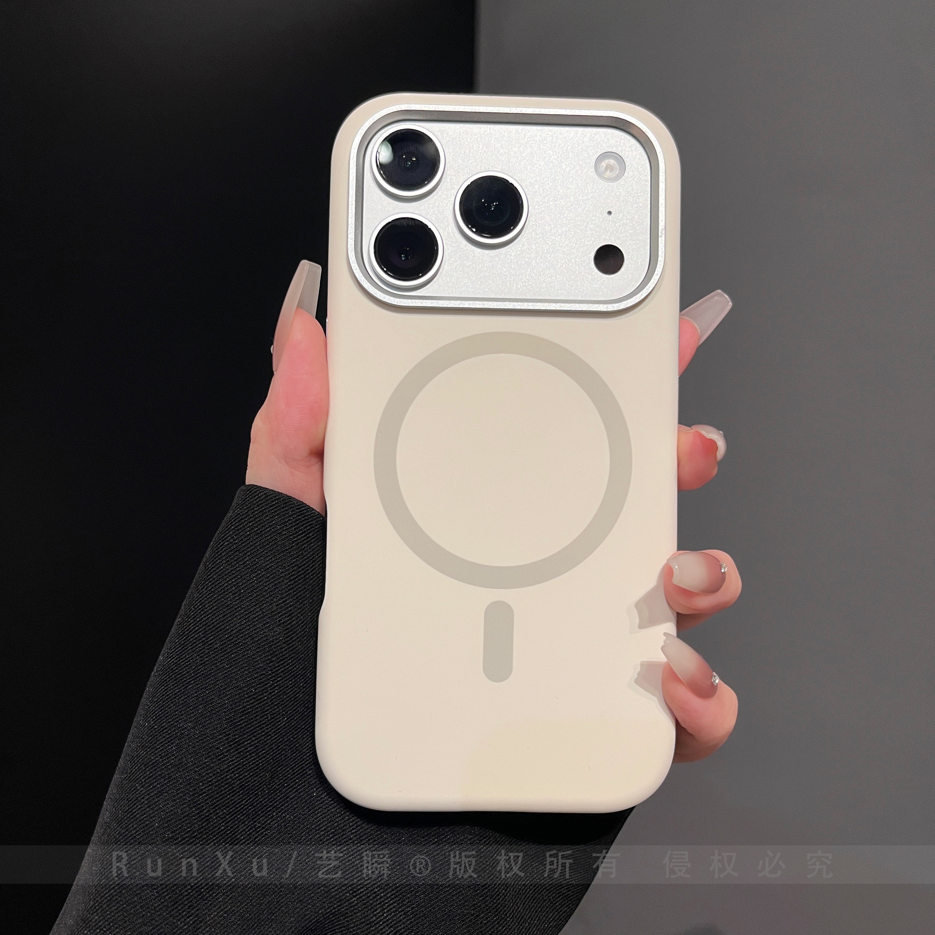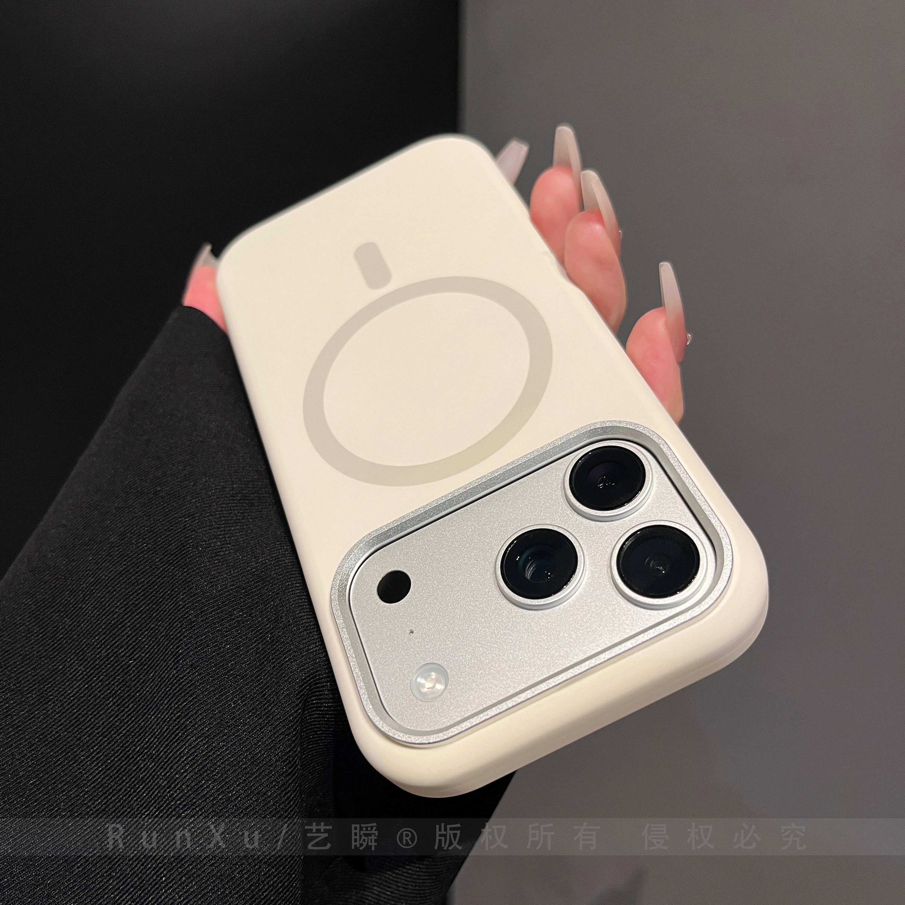 简约古董白纯色磁吸液态硅胶电镀镜框适用iPhone17ProMax手机壳苹果16pro亲肤大孔ip15巨好看新款17pro保护套