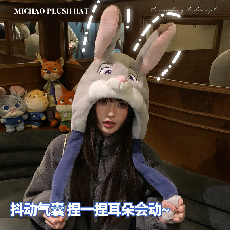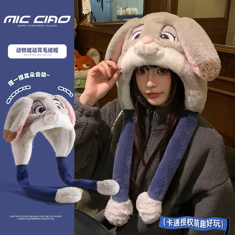 耳朵会动可爱毛绒帽女2025新款毛茸茸帽子冬季保暖防风护耳雷锋帽