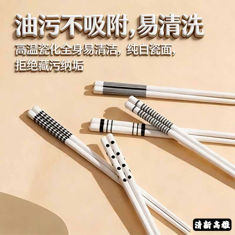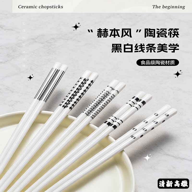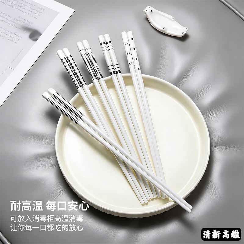 炊大皇陶瓷筷子家用高档套装高颜值餐具耐高温赫本风防霉分食瓷筷
