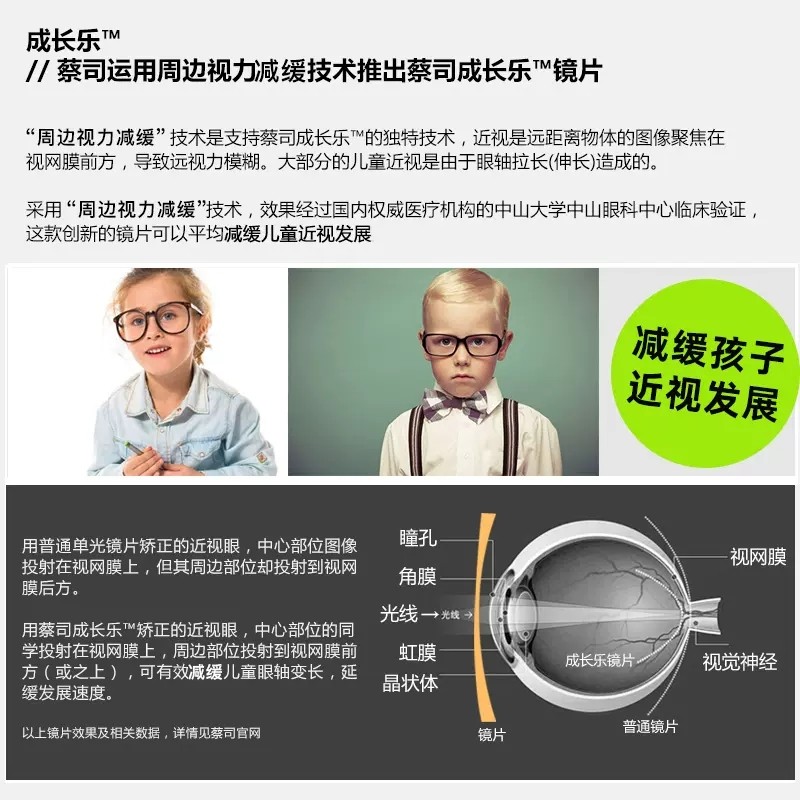 蔡司成长乐莲花膜儿童防控学生近视镜片离焦铂金膜配近视镜防蓝光