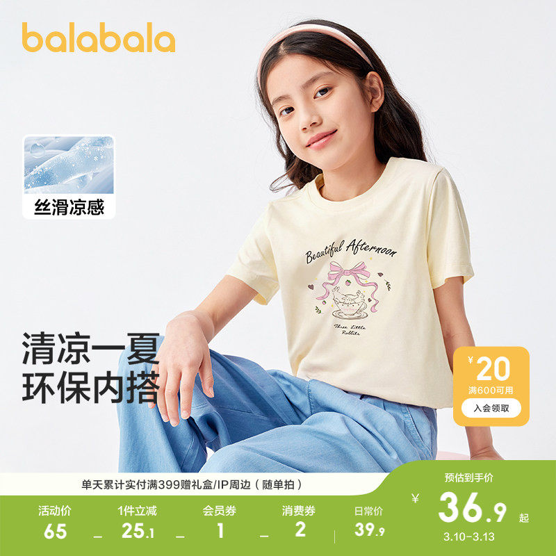 巴拉巴拉童装儿童短袖女童t恤轻薄春夏装中大童凉感甜美时尚上衣