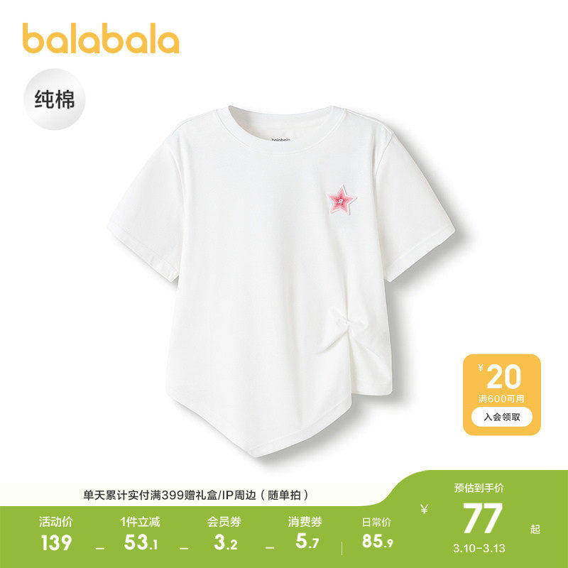巴拉巴拉童装儿童短袖女童t恤夏装轻薄新款纯棉上衣休闲百搭上衣