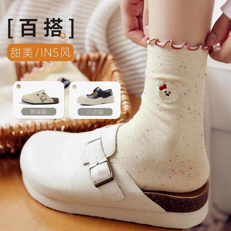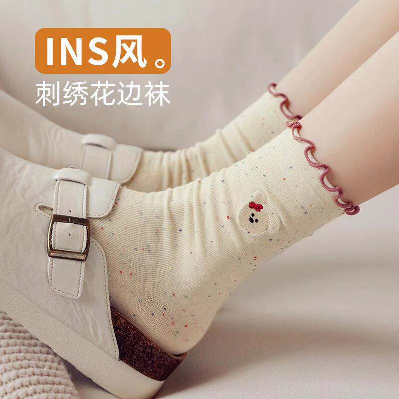 木耳花边袜子女春秋季中筒袜 ins潮袜女士棉袜 4双装起多规格