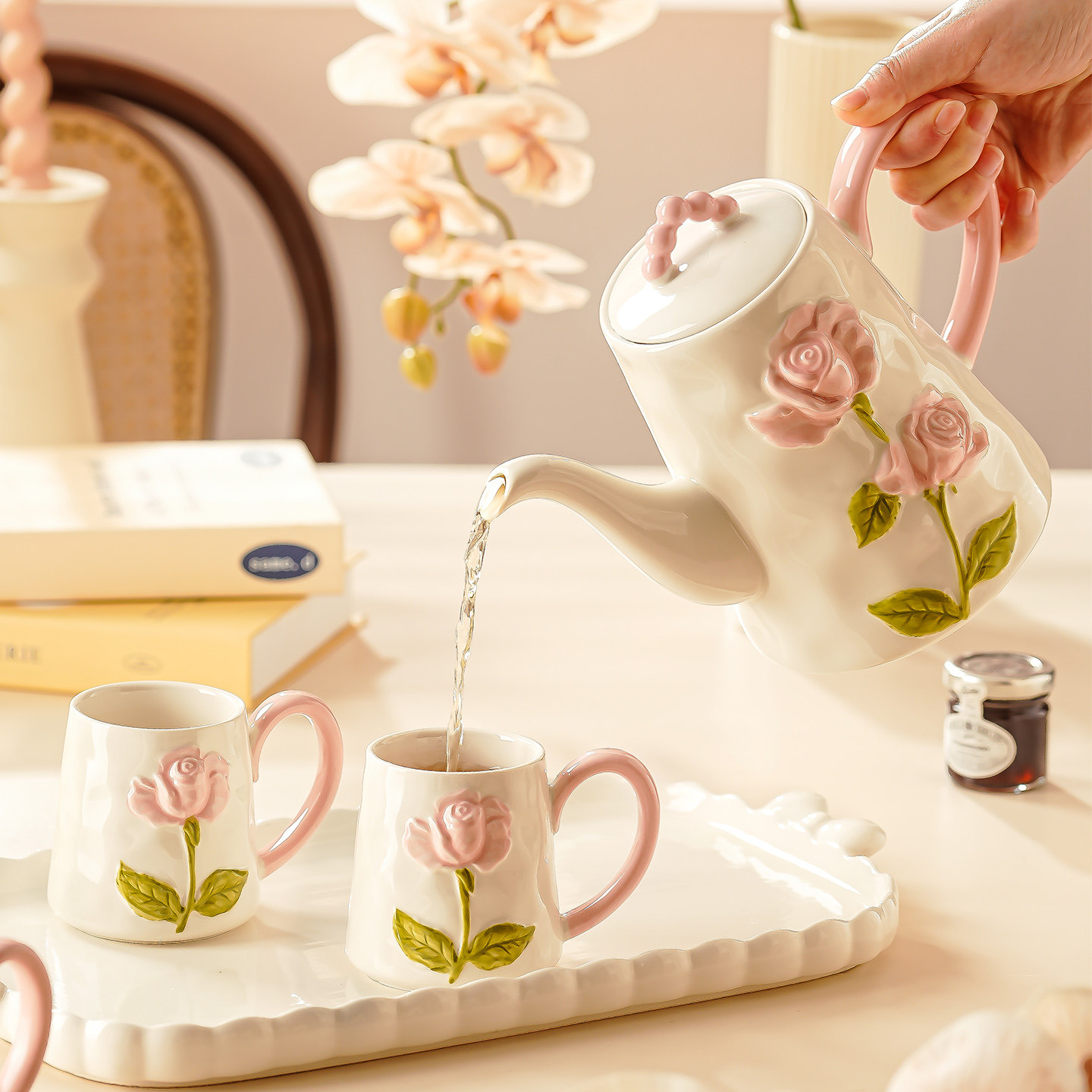 客厅杯子套装新居乔迁茶杯具套装茶壶待客水壶陶瓷轻奢结新婚礼物