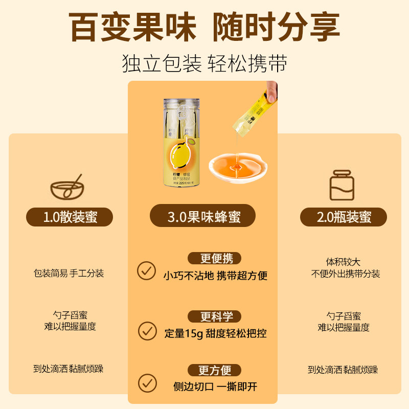 养蜂婆婆蜂蜜纯正百花蜜天然洋槐蜜柠檬蜂蜜正品便携挤压小瓶包装