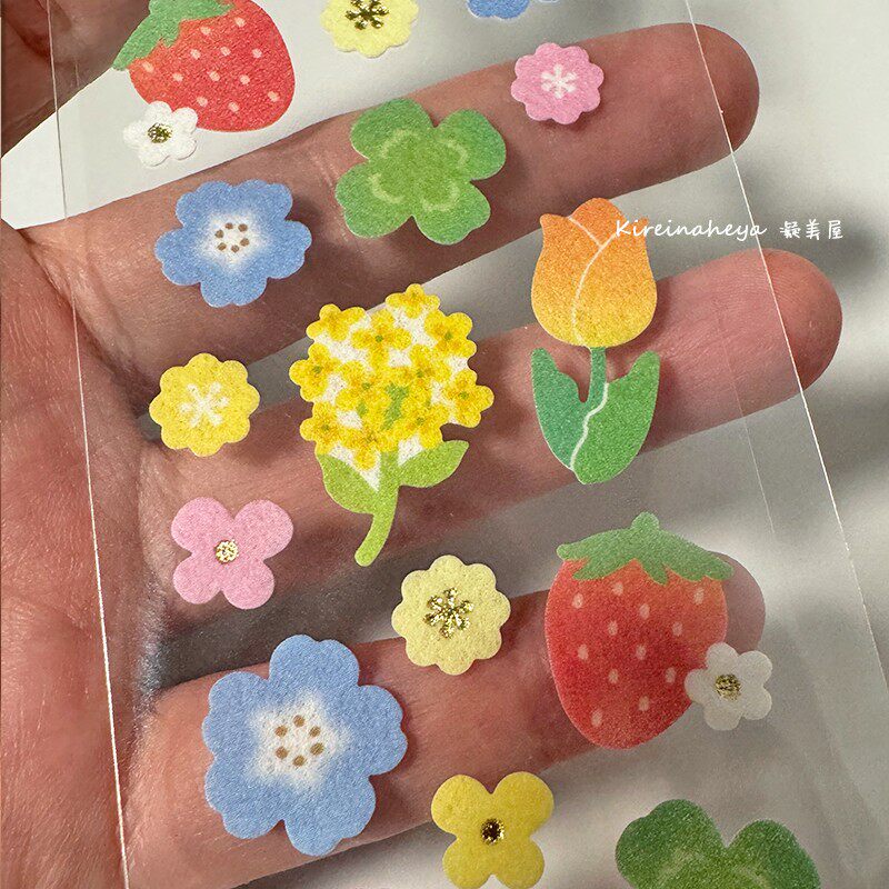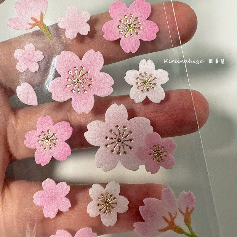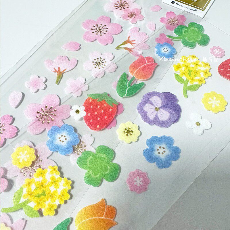日本新款人气樱花季春天限定绒立体手账粘性草莓四叶草樱花贴纸