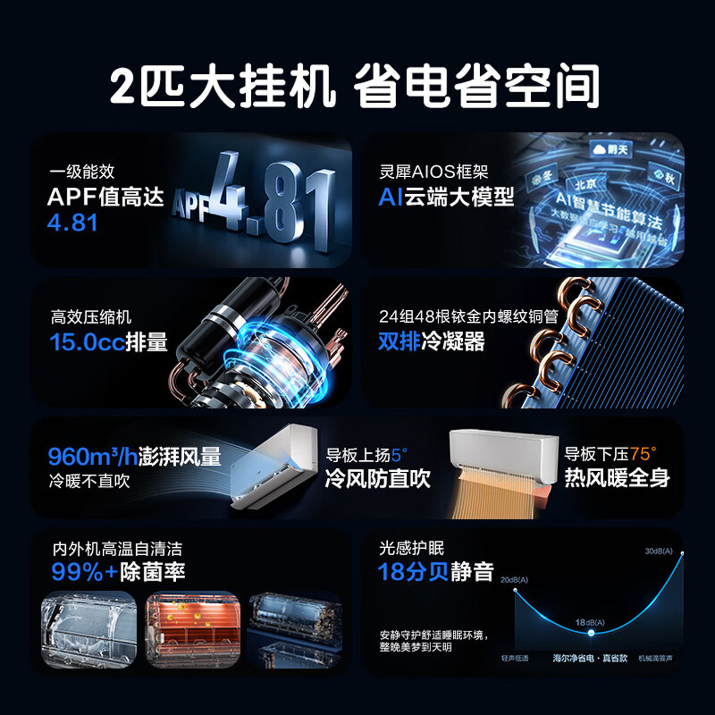 海尔空调3匹2匹挂机一级能效家用变频冷暖壁挂式客厅卧室官方旗舰