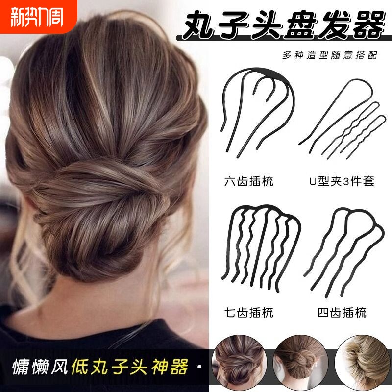 懒人盘发神器丸子头四齿插梳发梳发簪倒插发卡U形发夹造型头饰女