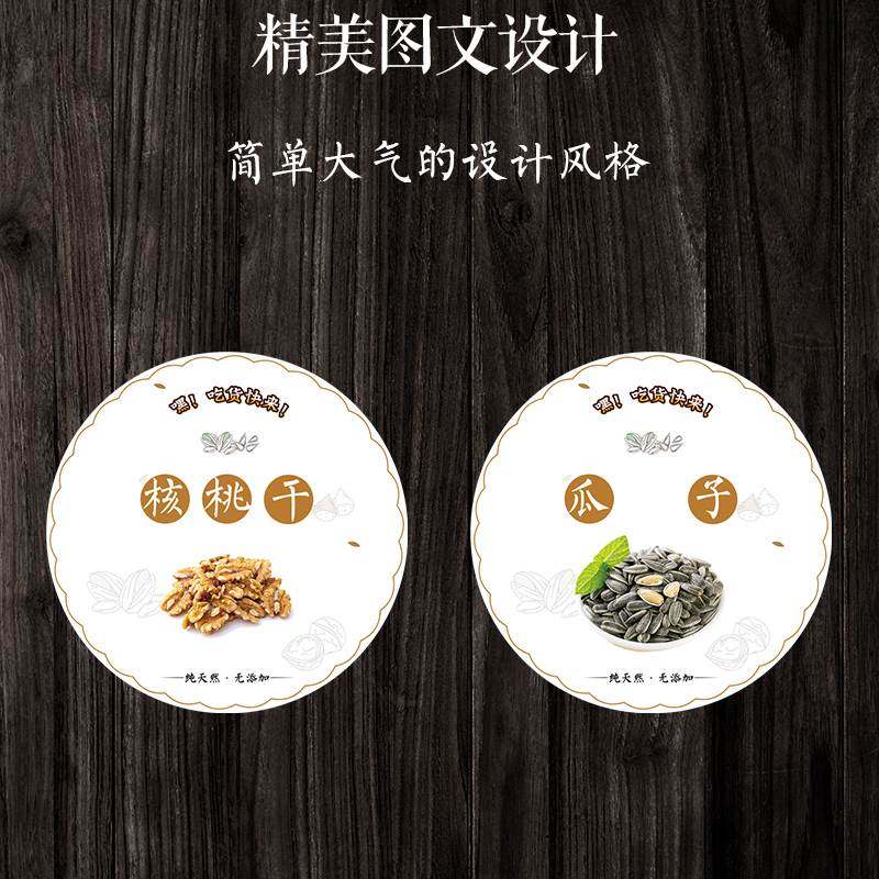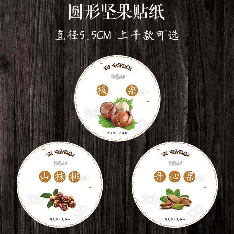 香榧虎皮腰果开口松子腰果巴旦木夏威夷果松子山核桃不干胶标签K