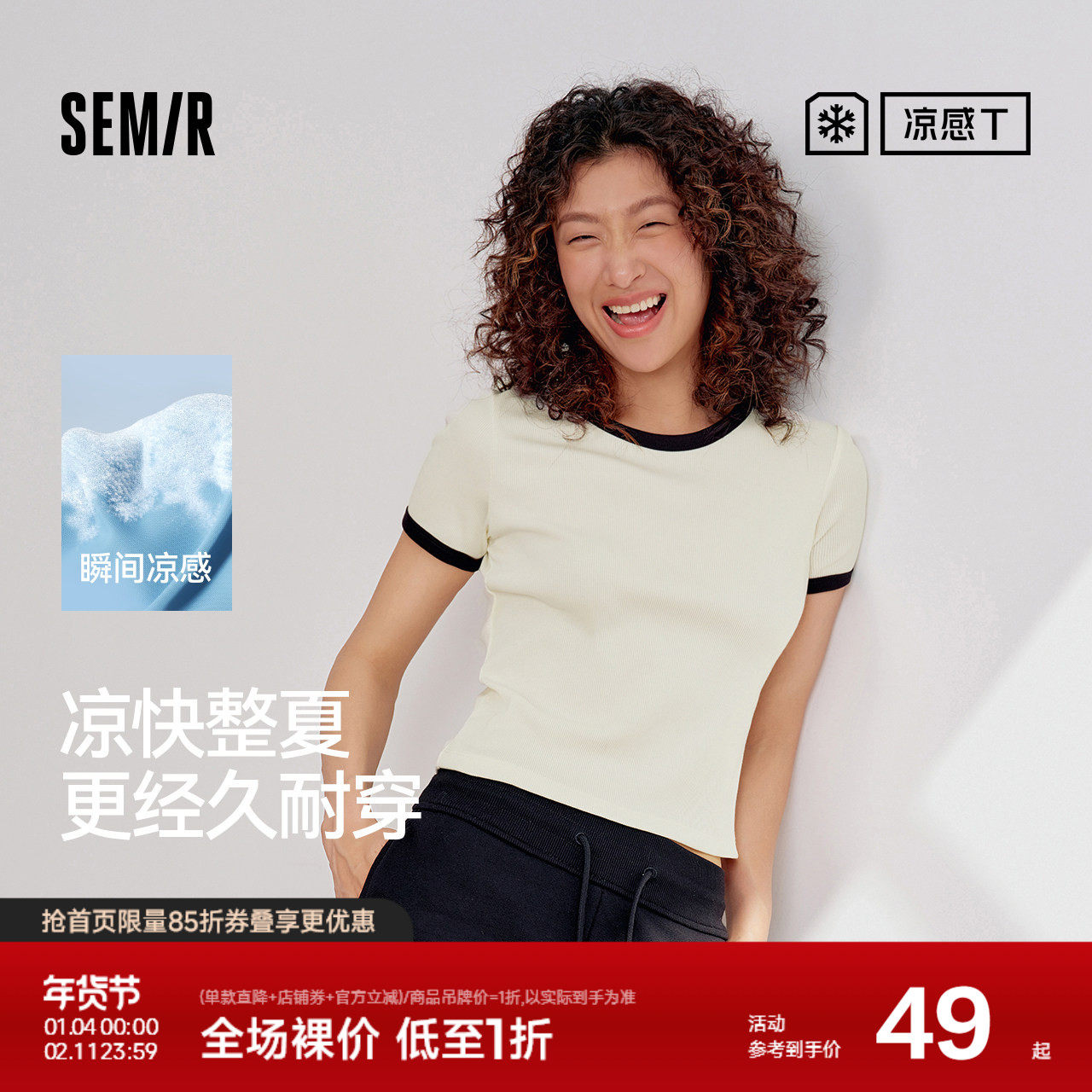 [商场同款]森马短袖T恤女短款紧身显瘦2025新款夏季凉感撞色上衣