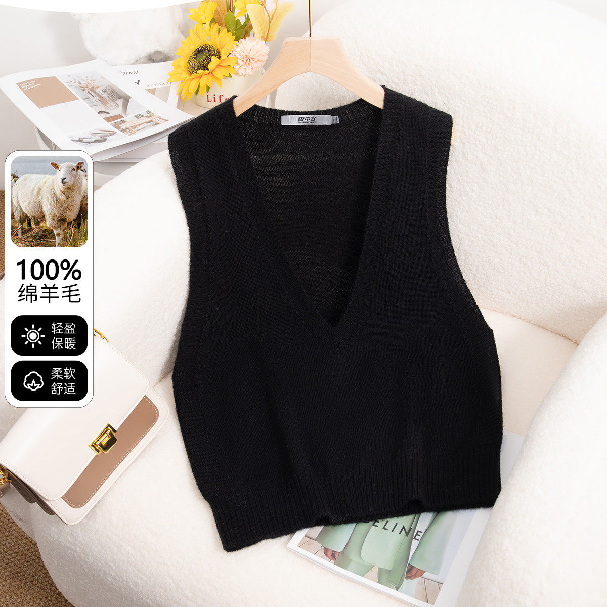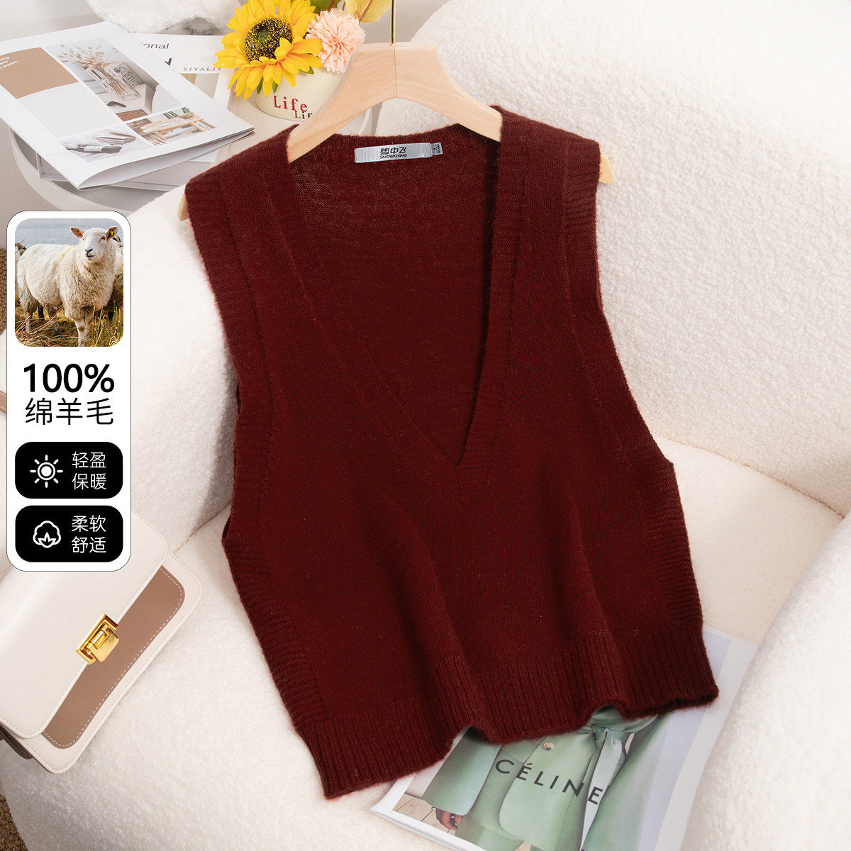 雪中飞冬新款【100绵羊毛】V领羊毛衫马甲女纯色休闲内搭叠穿
