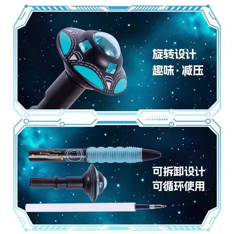 旋转陀螺笔按动转转中性笔旋转解压陀螺飞碟笔学生趣味考试刷题笔