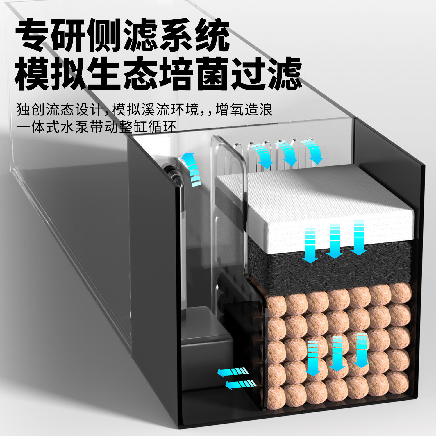 桌面溪流缸侧滤自循环家用生态鱼缸小型客厅造景过滤制氧一体阳台