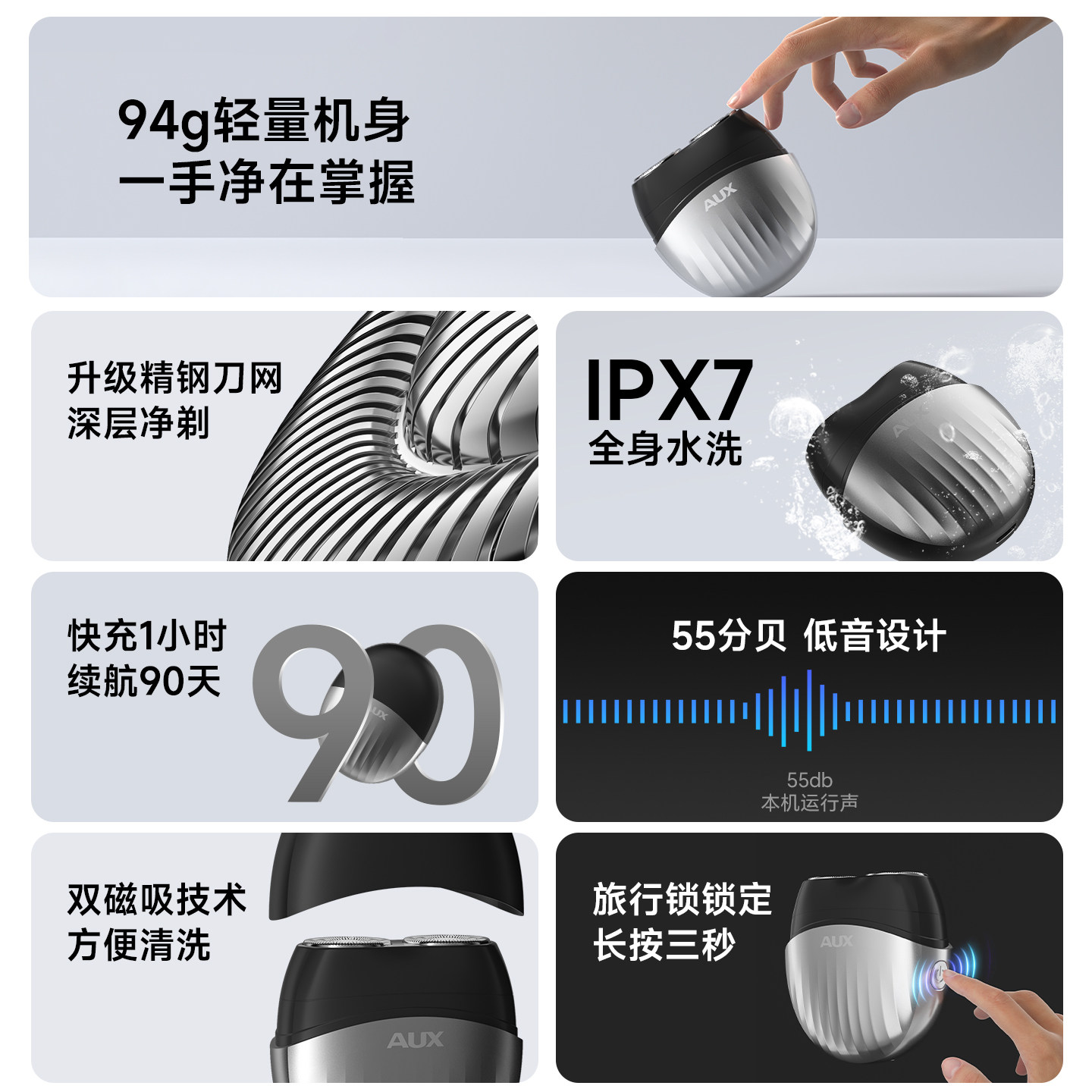 奥克斯剃须刀电动男士刮胡刀2025年新款全身水洗便携剃胡须刀礼物