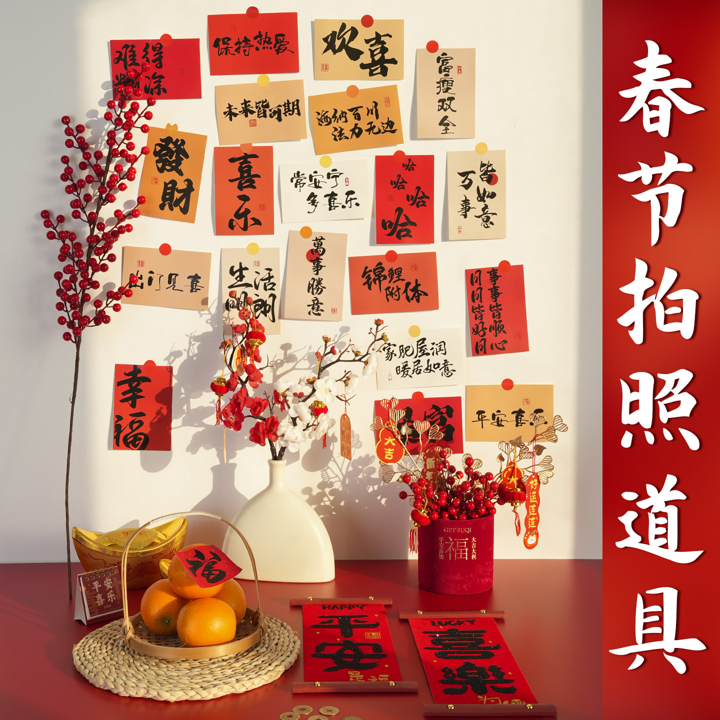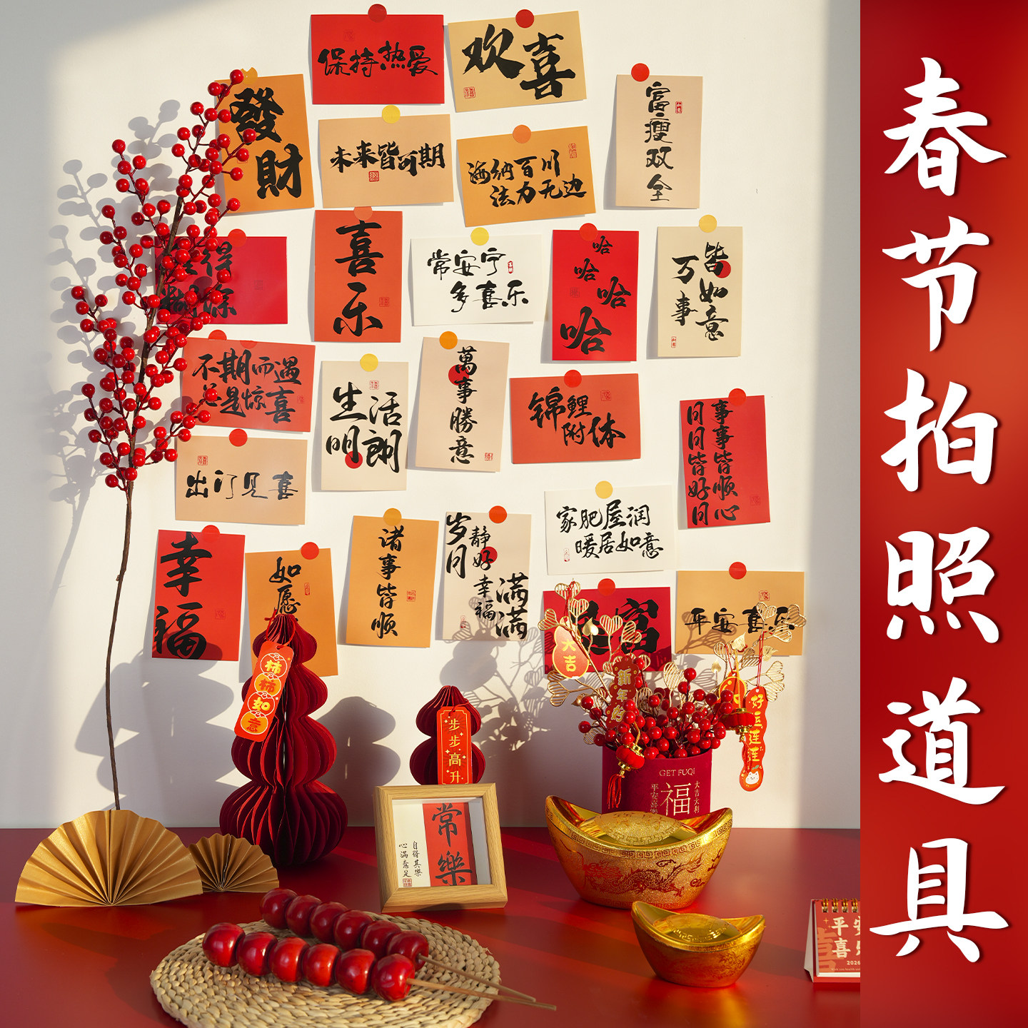 2026新年拍摄道具装饰摆拍国潮喜庆主题背景布产品布景拍照美食首饰美妆珠宝跨年博主直播场景布置背景板