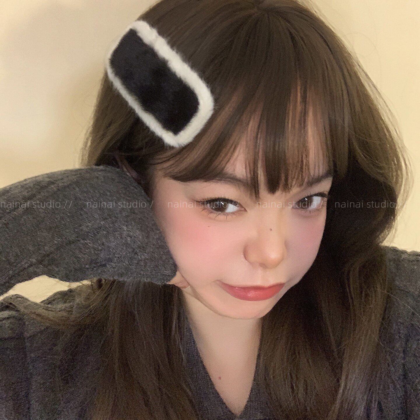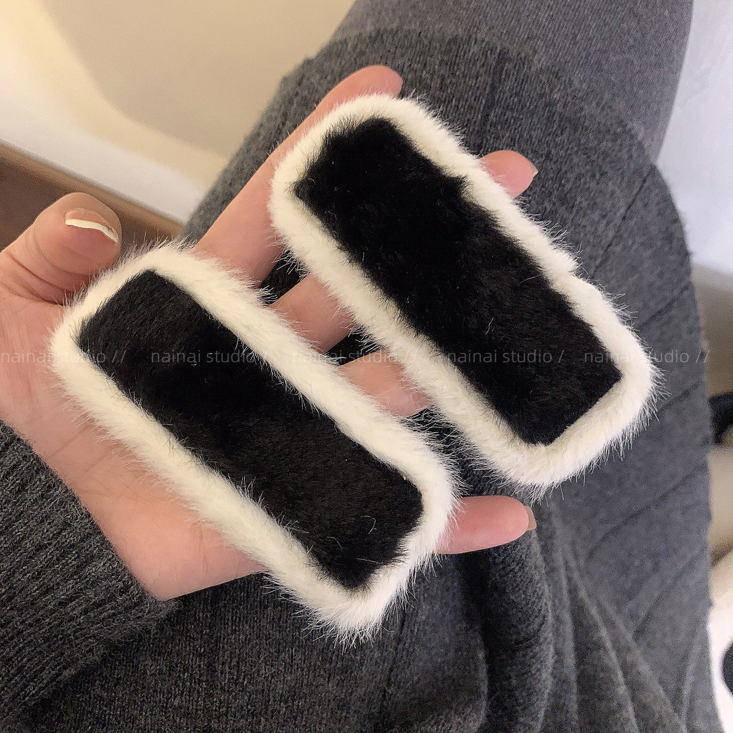 仿皮草BB夹~黑白撞色小香风复古法式高级感毛绒绒发夹发饰头饰女A