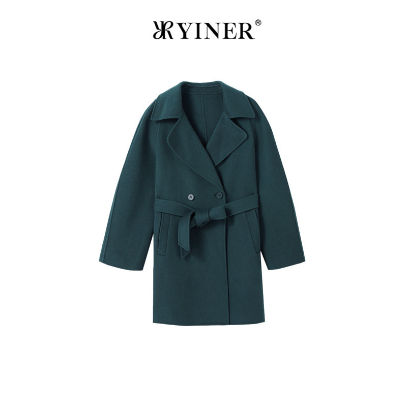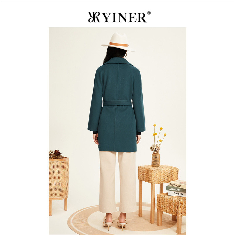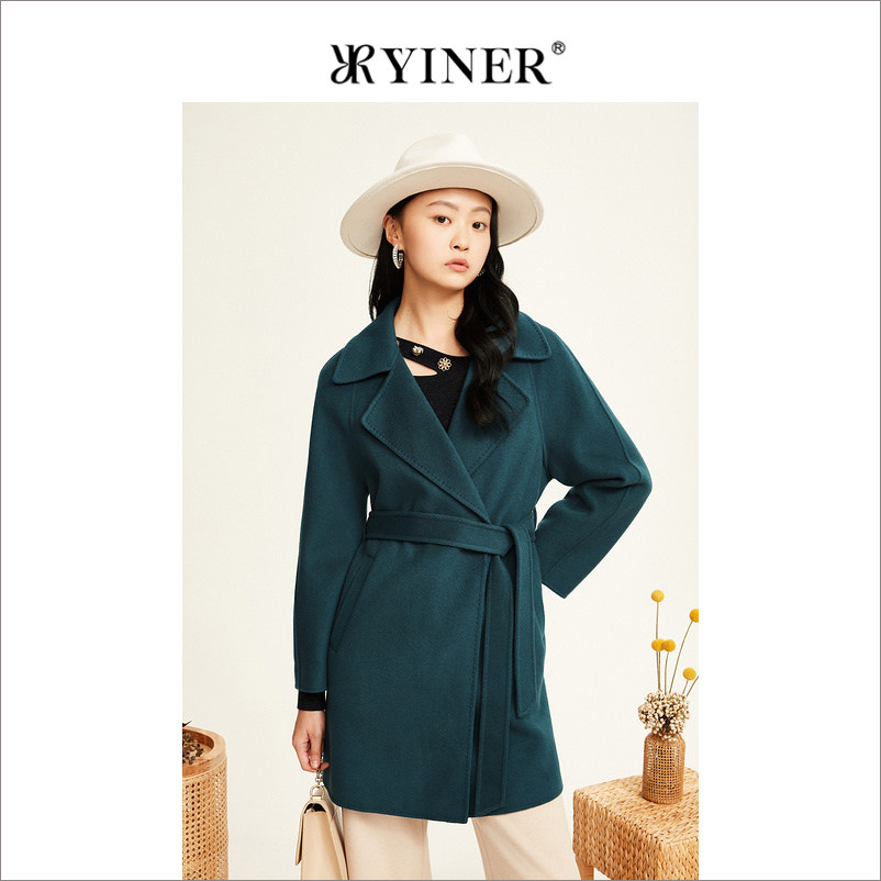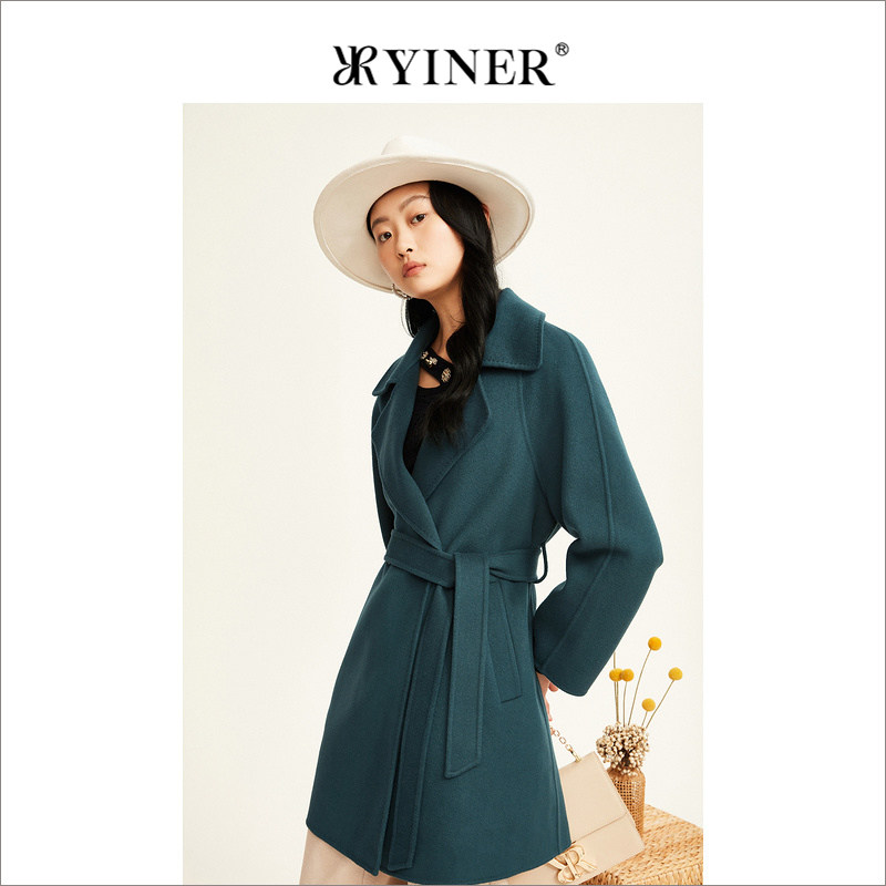 YINER音儿女装冬季中长款外套羊毛混羊绒双面呢外大衣