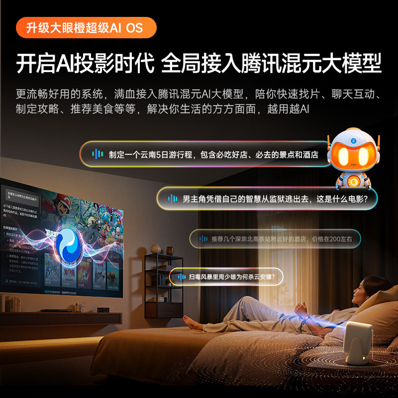 【年度新品政府补贴】大眼橙C3D投影仪高亮家用高清放映机可连手机1080P智能4K卧室无需幕布投墙投屏2025新款