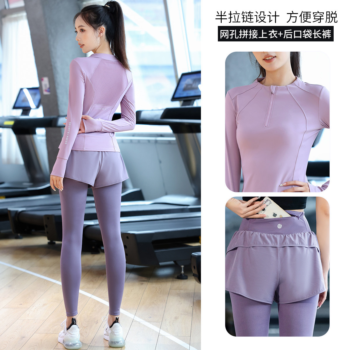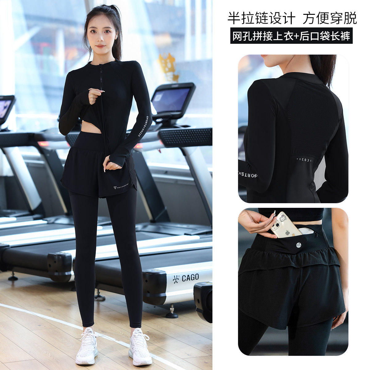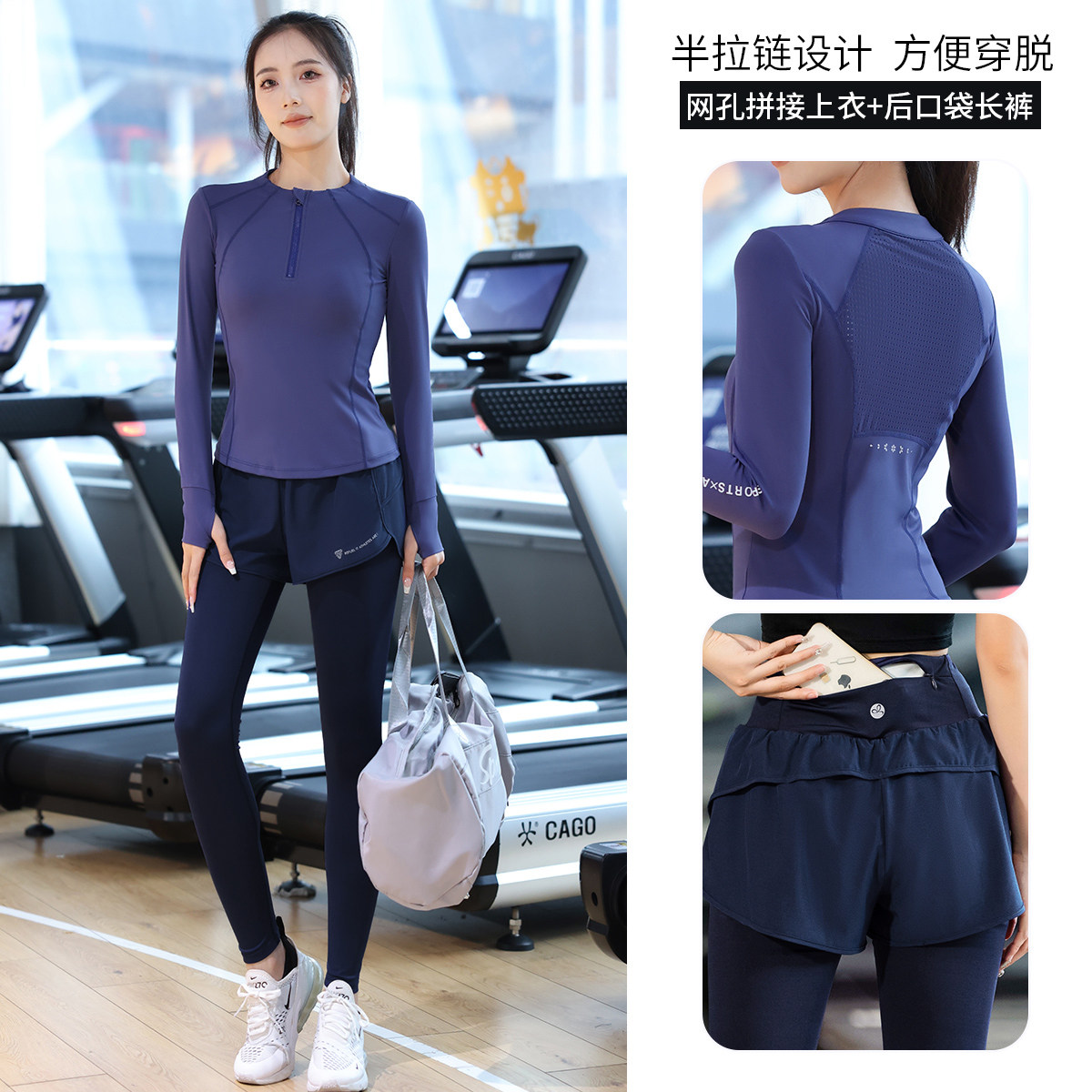 专业跑步有氧运动服女秋冬款半拉链健身衣套装高弹网红跳操瑜伽服