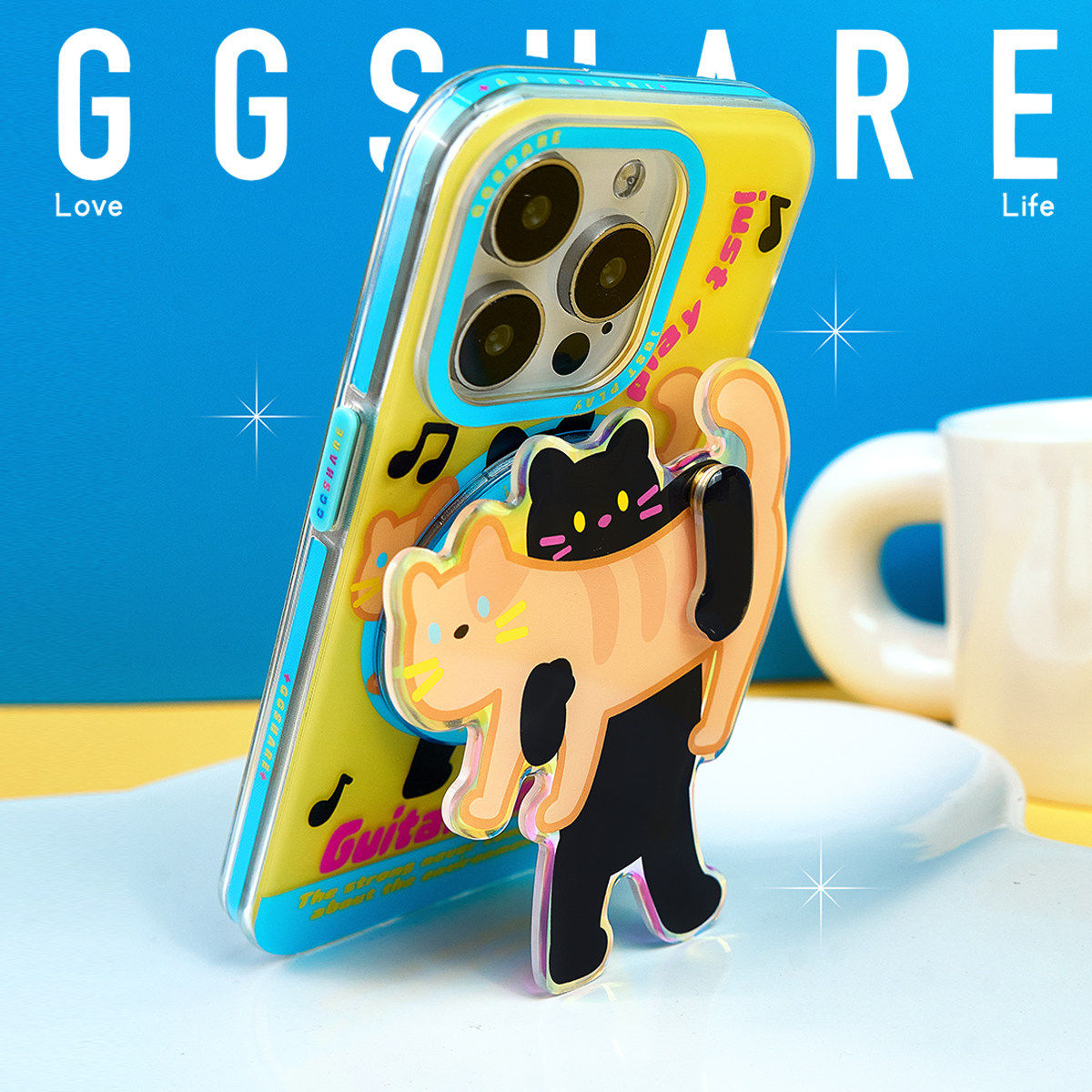GGSHARE寄居蟹原创吉他猫iPhone17手机壳新款适用苹果15带磁吸支架13手机套 14保护套高级感女可爱防丢手腕绳