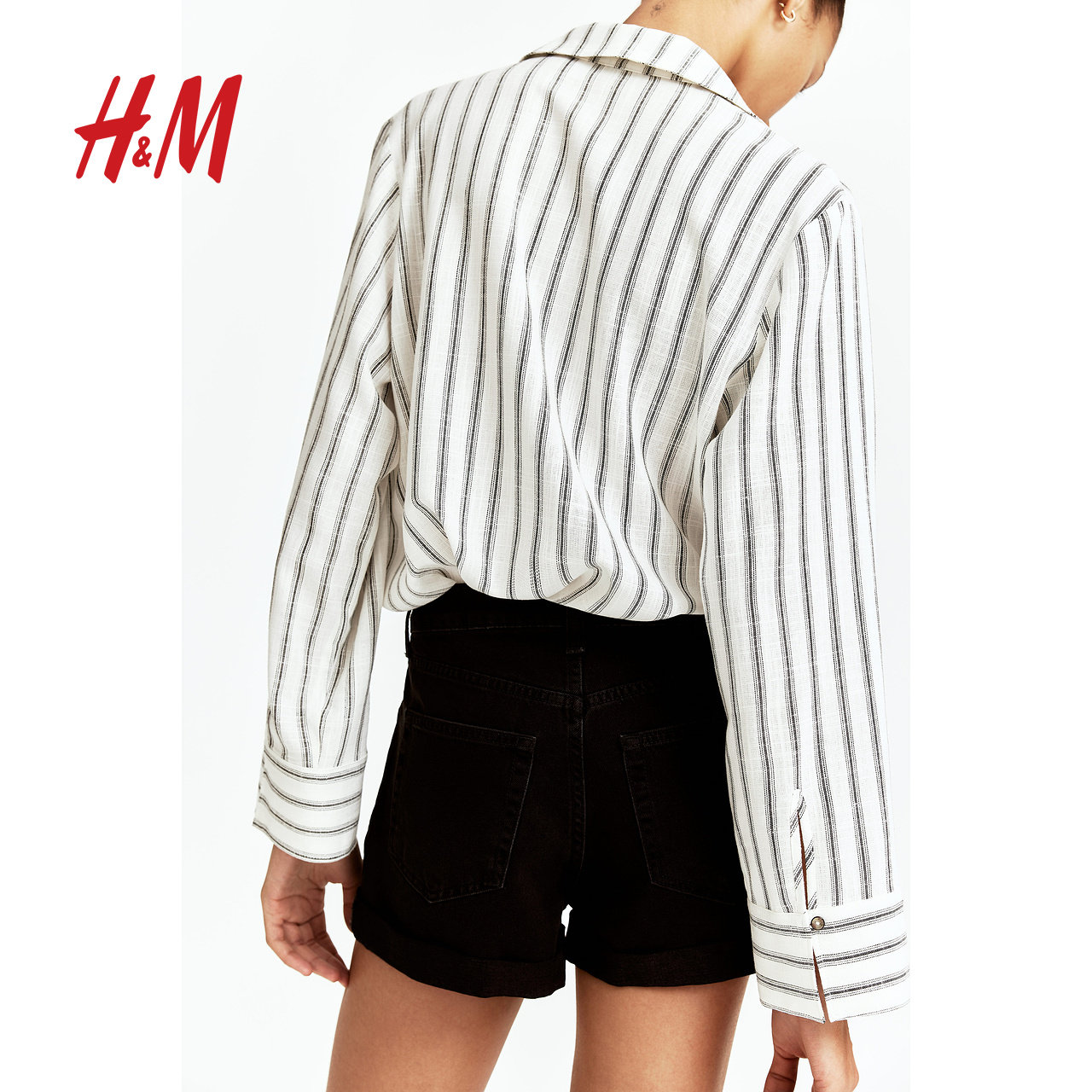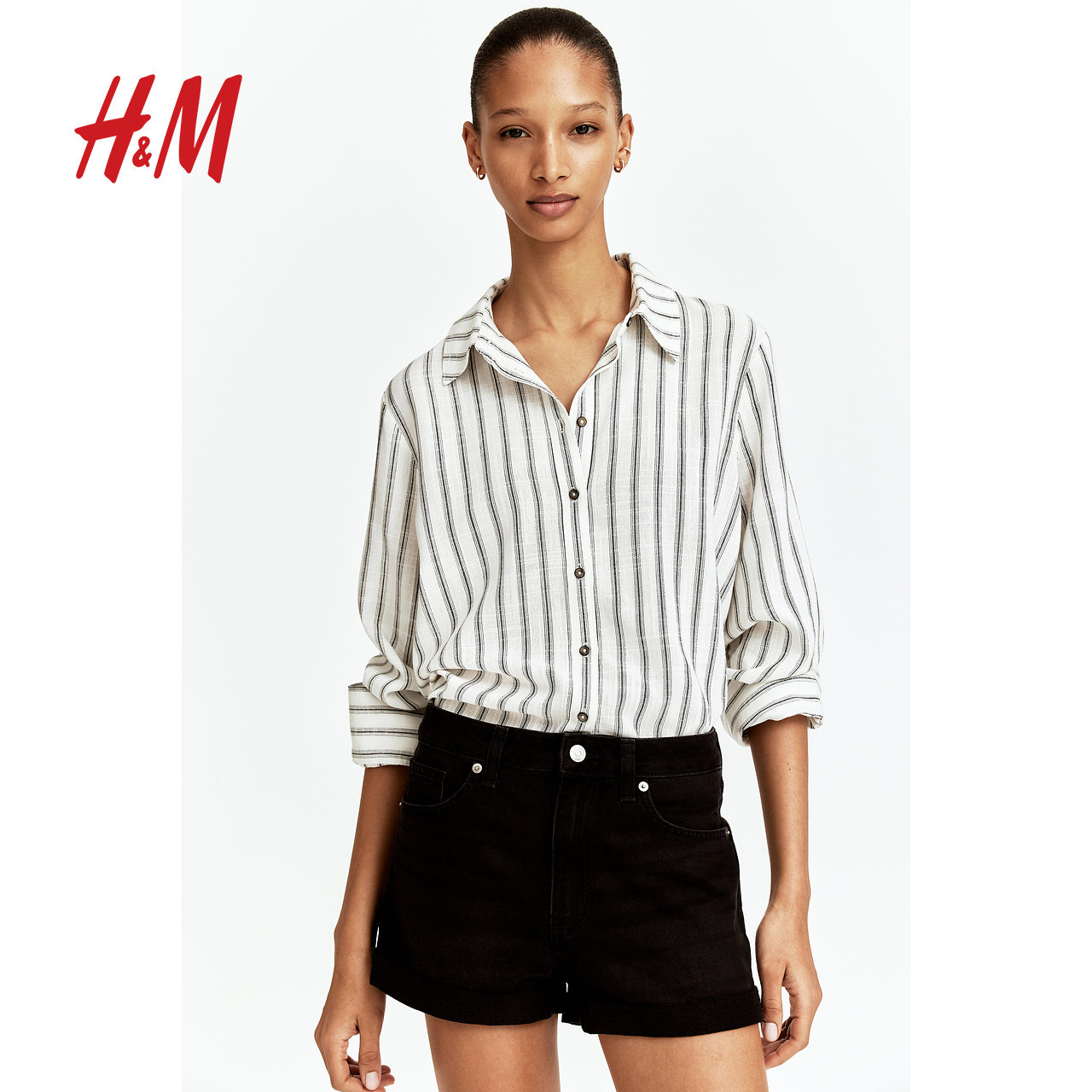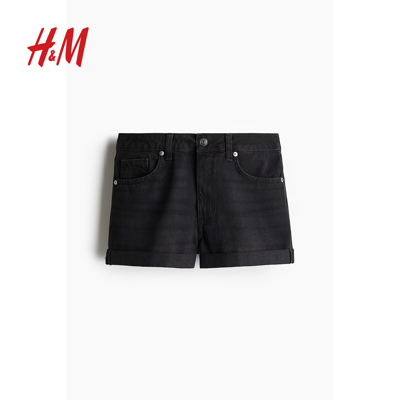 HM女装牛仔裤春季高腰直筒休闲通勤时尚牛仔短裤1267162