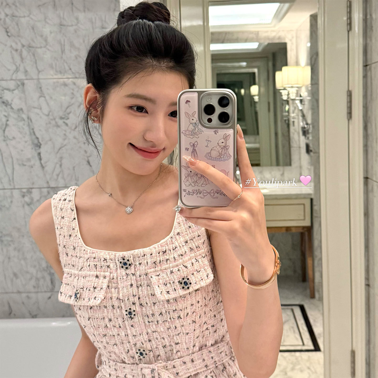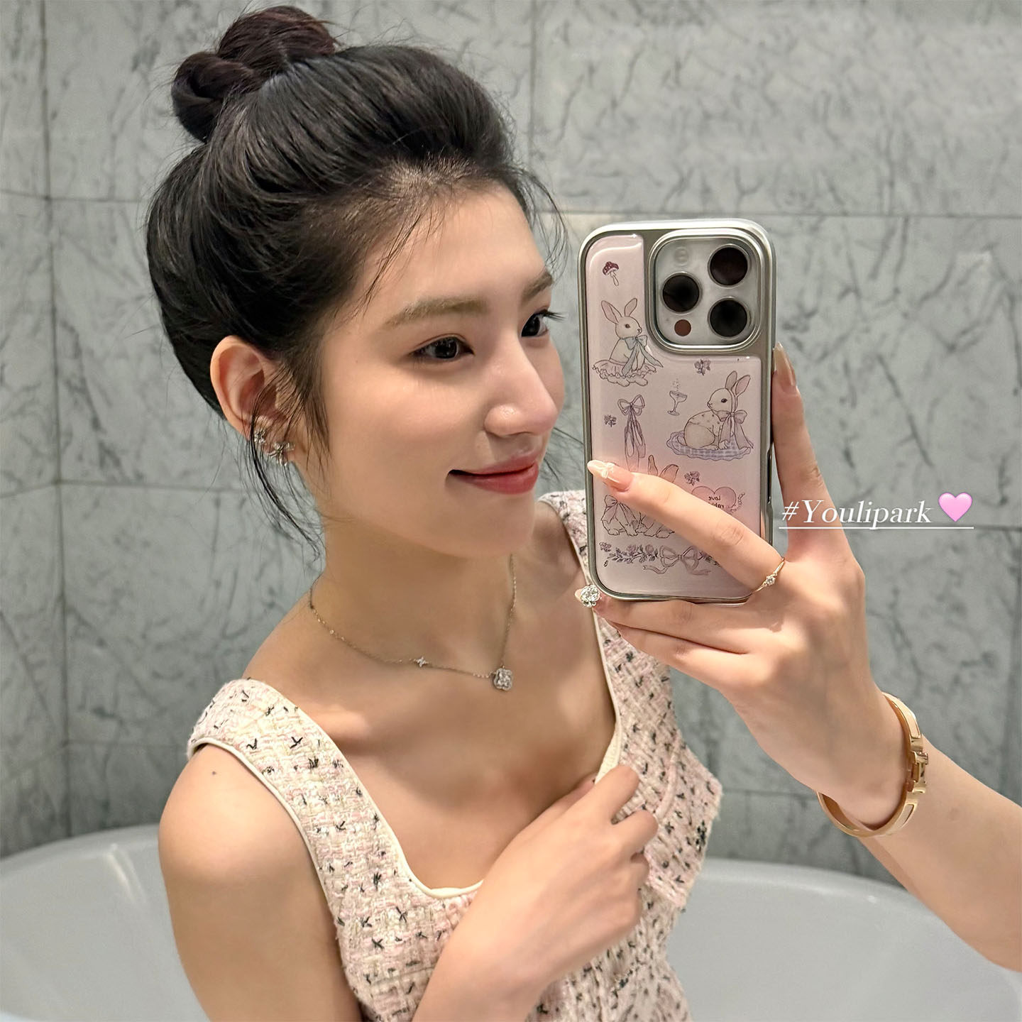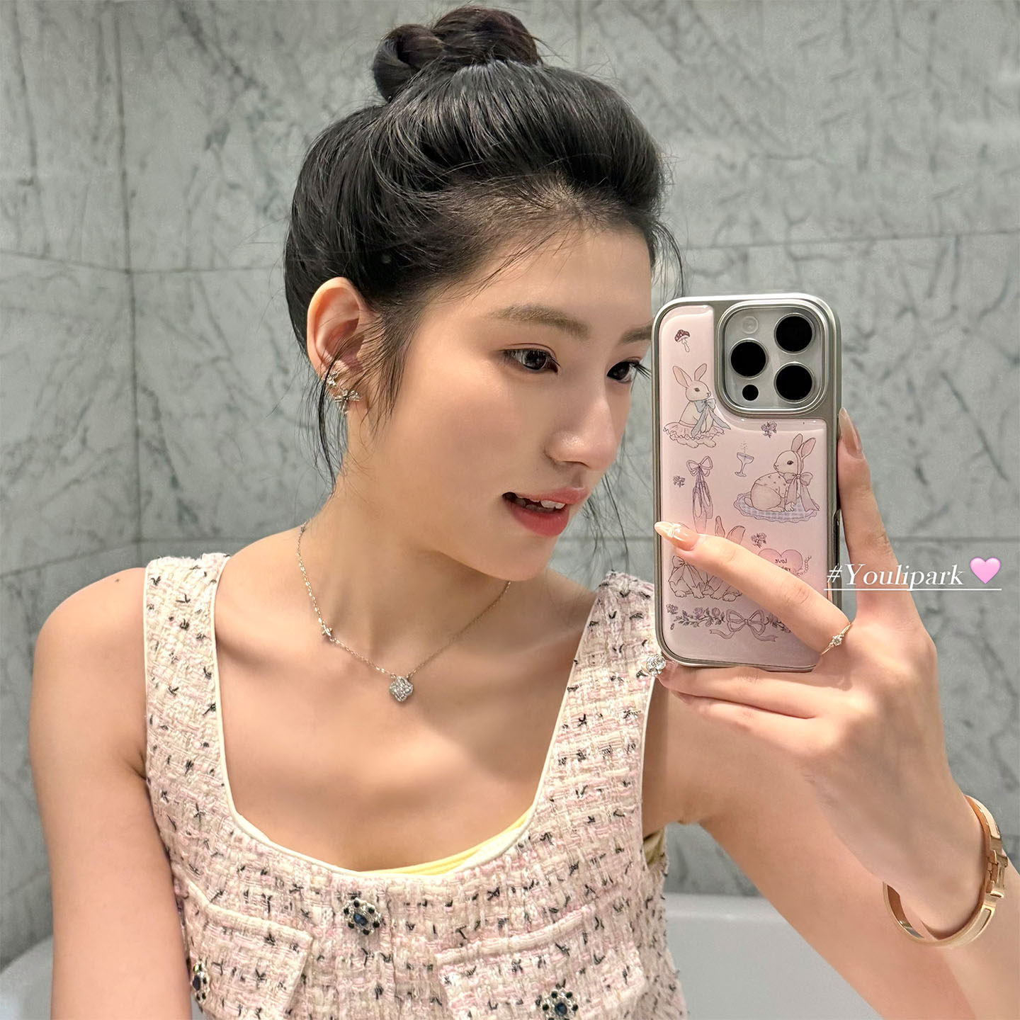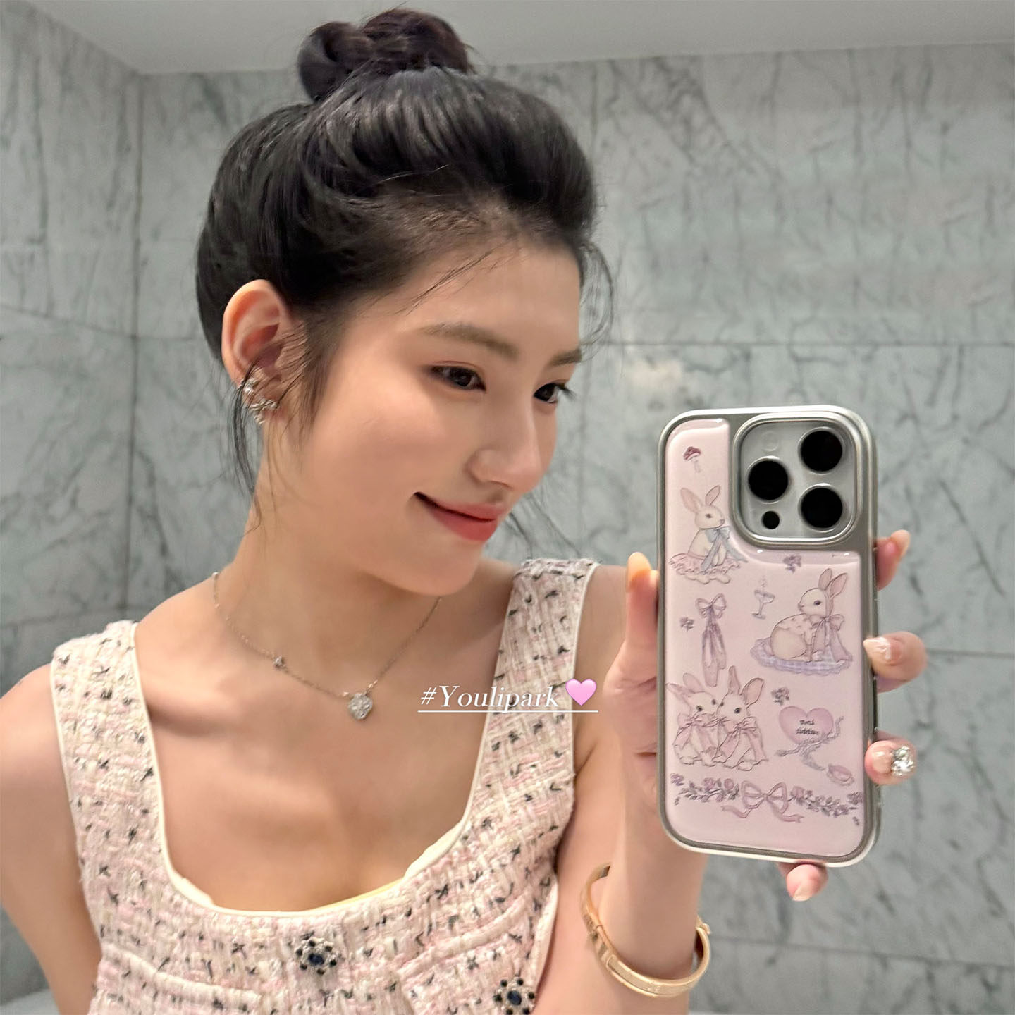 由里公园ins韩系甜美少女粉色蝴蝶结兔子15适用16pro苹果16ProMax手机壳iPhone16全包14新款14Promax保护套13