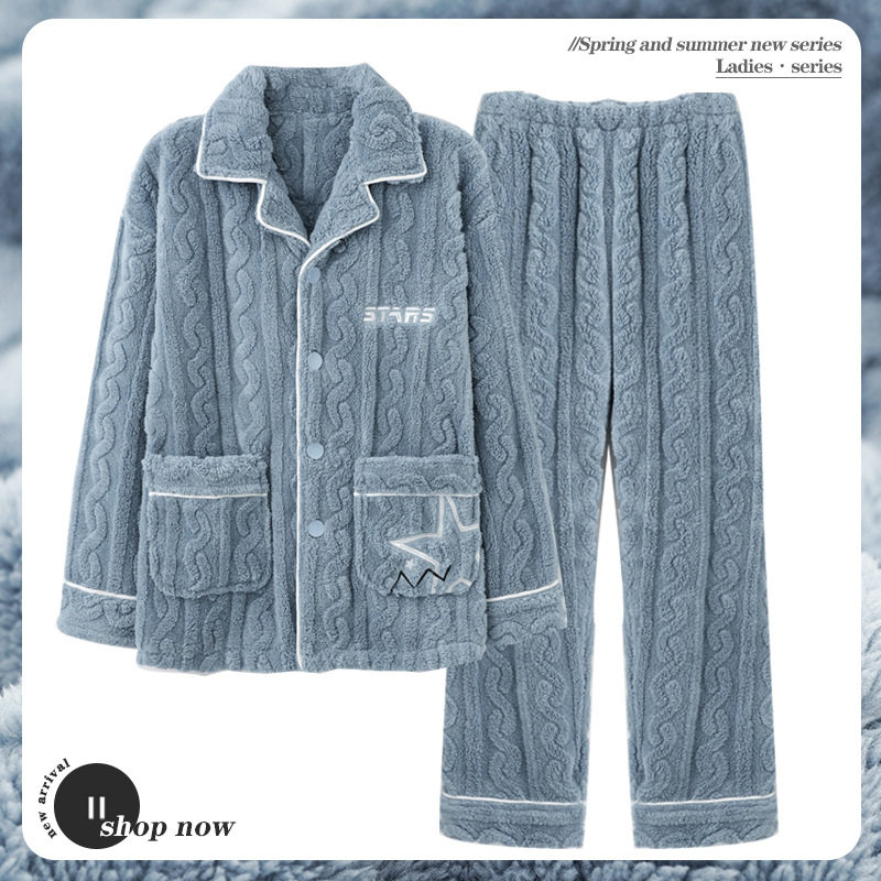 睡衣男士冬款珊瑚绒加绒加厚法兰绒秋冬季大码家居服套装保暖新款