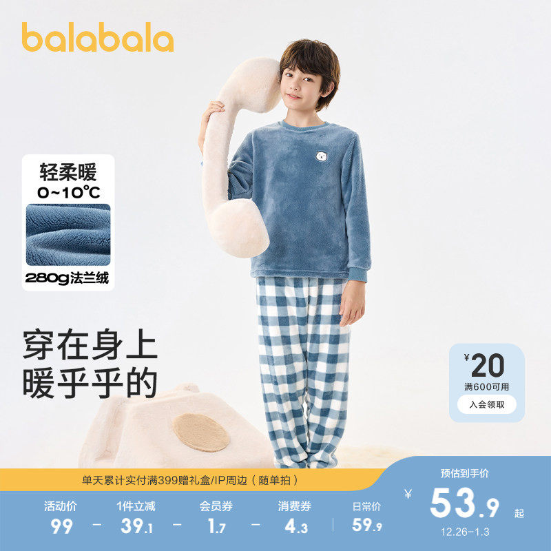 巴拉巴拉儿童家居服套装冬季保暖法兰绒男女童睡衣小童大童亲子潮