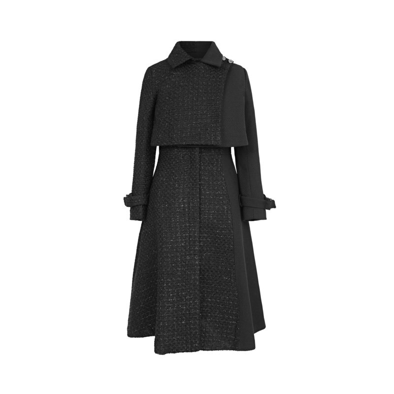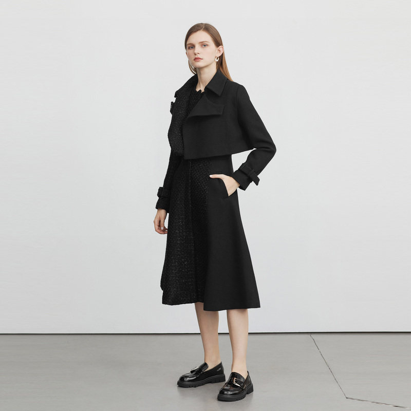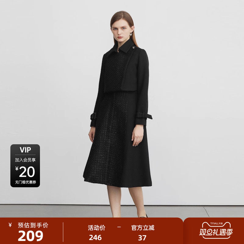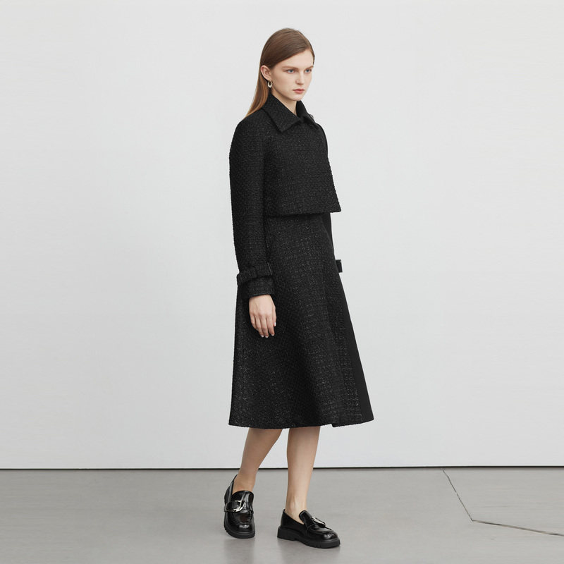 sdeer圣迪奥女装小香风翻领肌理拼接连衣裙套装S224Z1416