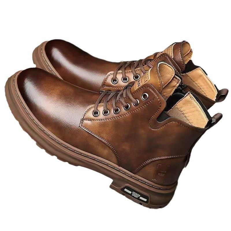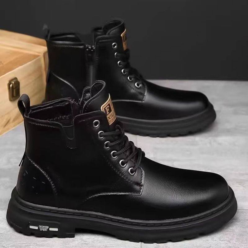 马丁靴男款冬季加绒棉鞋英伦风男士工装机车靴防滑中筒加棉高帮