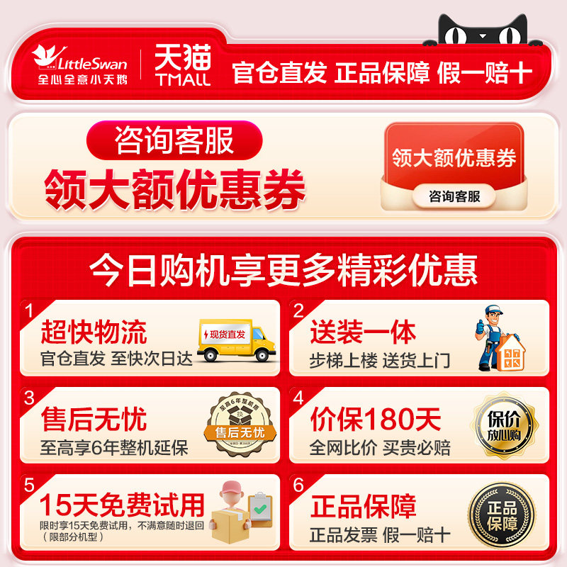 [纯平自由嵌]小天鹅洗衣机10KG家用水魔方滚筒洗脱一体628T/PLUS