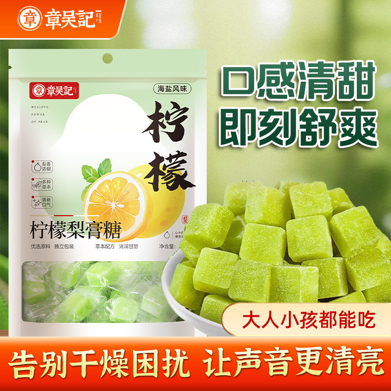 章吴记薄荷梨膏糖柠檬味百草儿童润喉糖正品官方旗舰店清新清凉