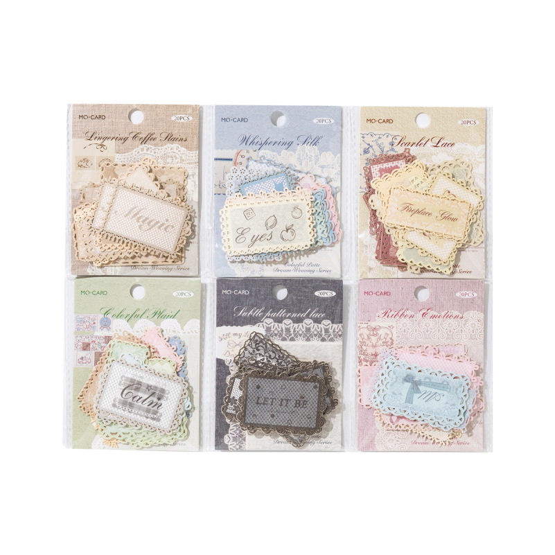 彩纹织梦系列镂空蕾丝标签贴纸20张 复古素材手帐痛包diy装饰拼贴