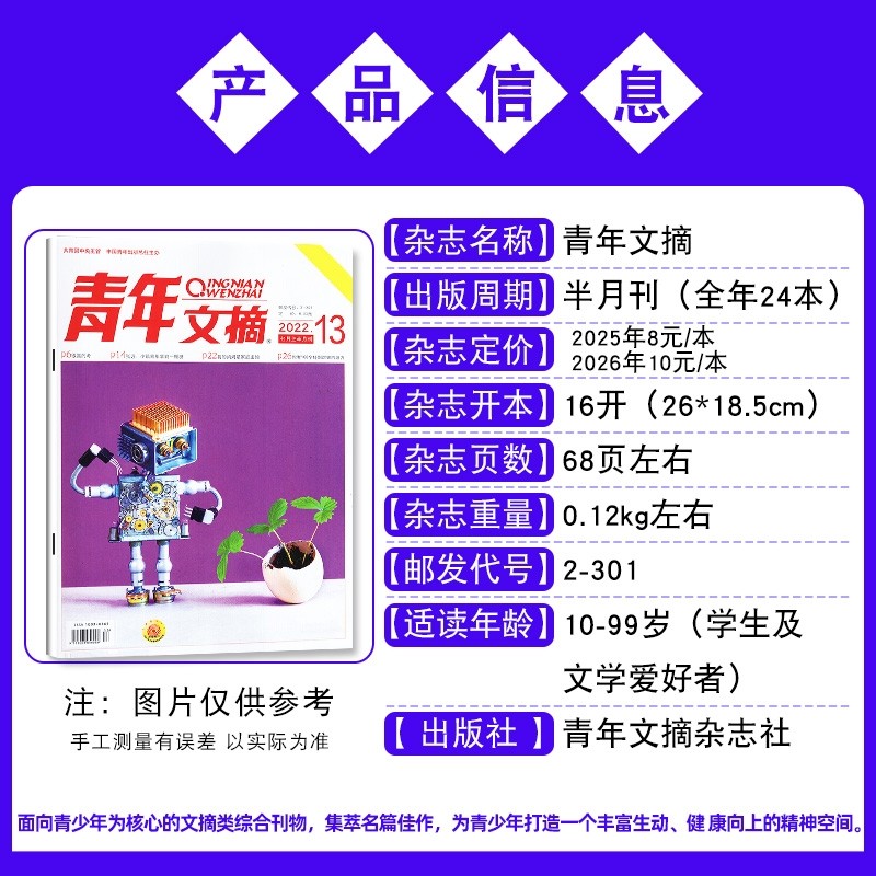 青年文摘初中版杂志2026年1期新/全年/半年订阅/2025年1-12月1-24期初高中生中高考高分作文素材意林读者合订本青少年励志期刊过刊