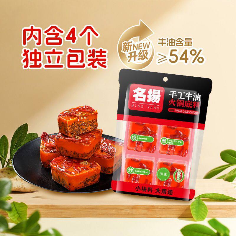名揚名扬火锅底料牛油麻辣360g*2袋手工全型香锅串串调味料小方块