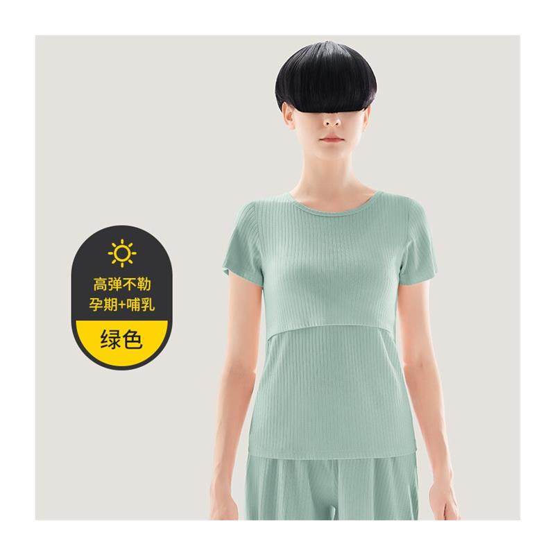 摩登孕妈哺乳上衣夏季薄款短袖孕妇T恤免穿文胸哺乳喂奶衣孕妇背