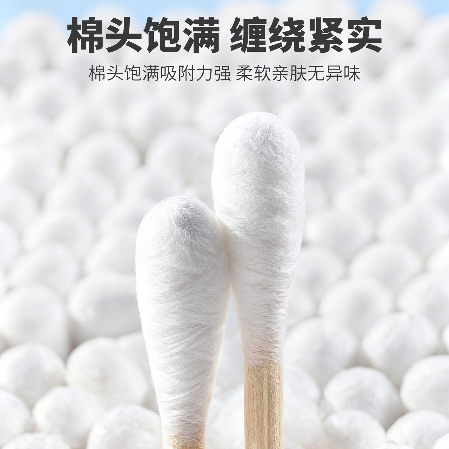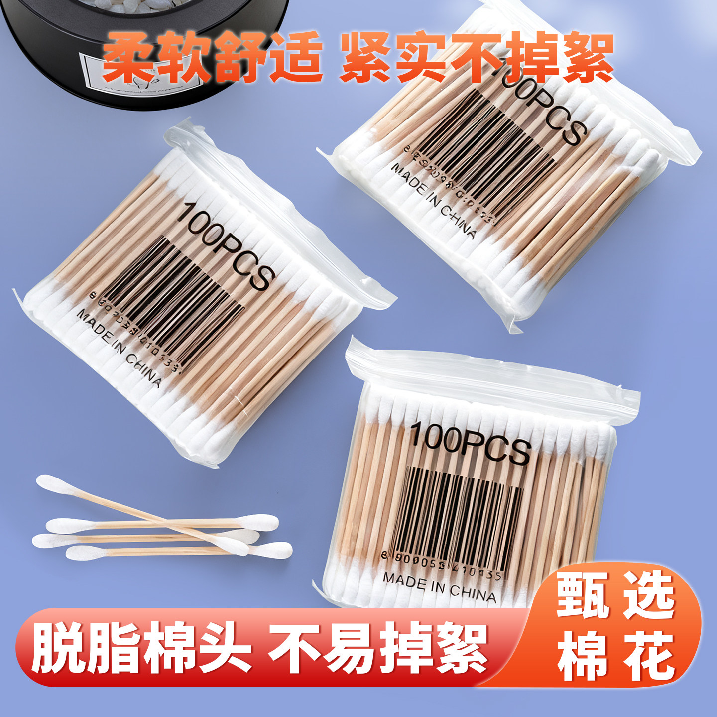 家用双头棉签袋装500支一次性化妆棉卸妆掏耳朵清洁棉棒棉花竹棒