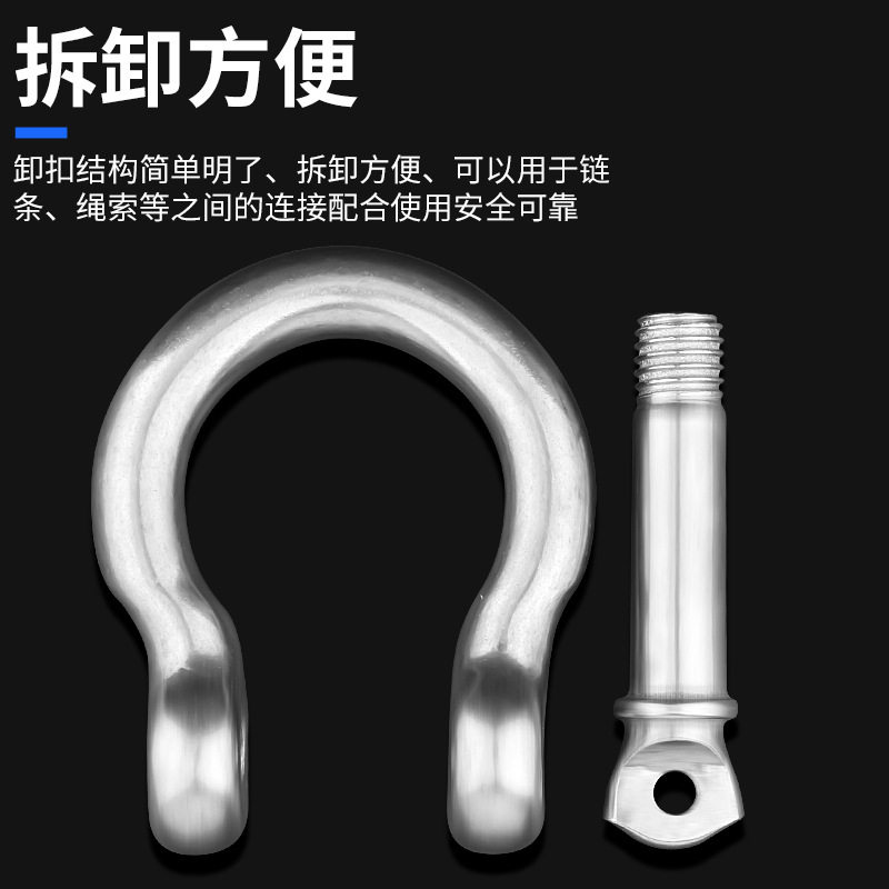 国标304不锈钢d型弓形卸扣u型环起重吊环吊装工具卸扣连接口吊耳