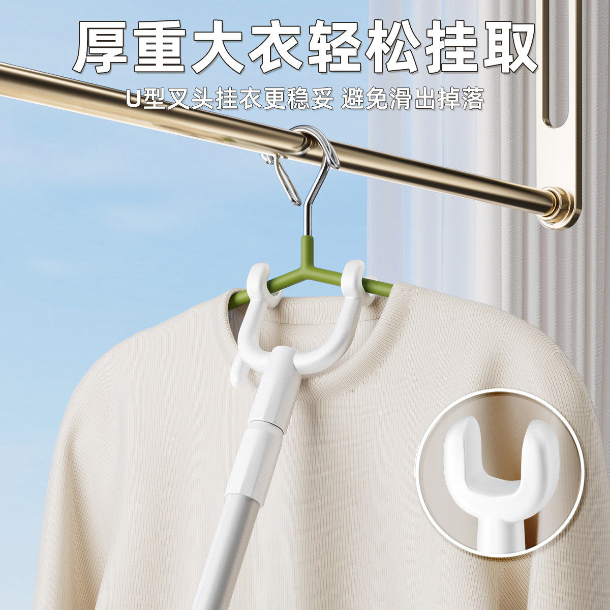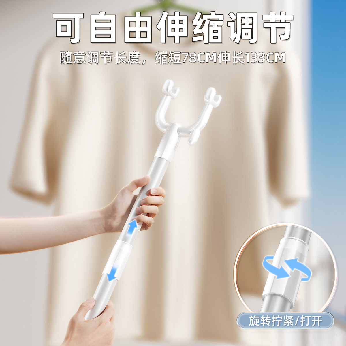 撑衣杆家用伸缩晾衣杆一根叉丫晒衣服的衣架杆子凉取挑衣叉阳台