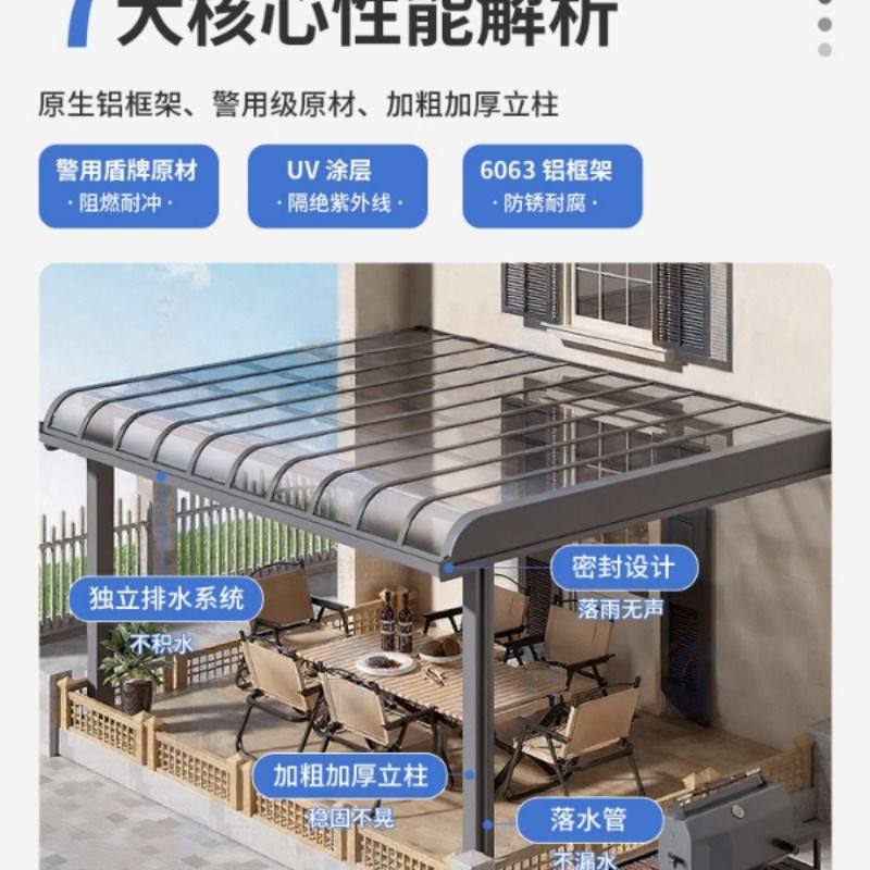 户外铝合金雨棚遮阳棚庭院别墅花园室外休闲铝材遮阳棚雨棚露台