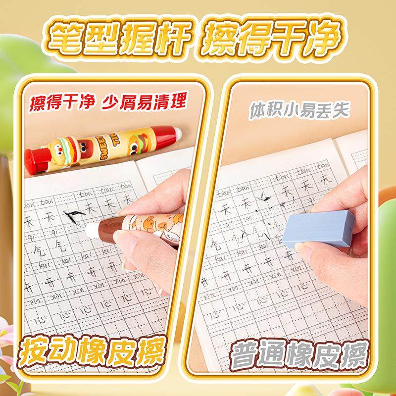 卡皮巴拉橡皮擦儿童按动式橡皮笔无痕不掉渣卡通橡皮小学生用品