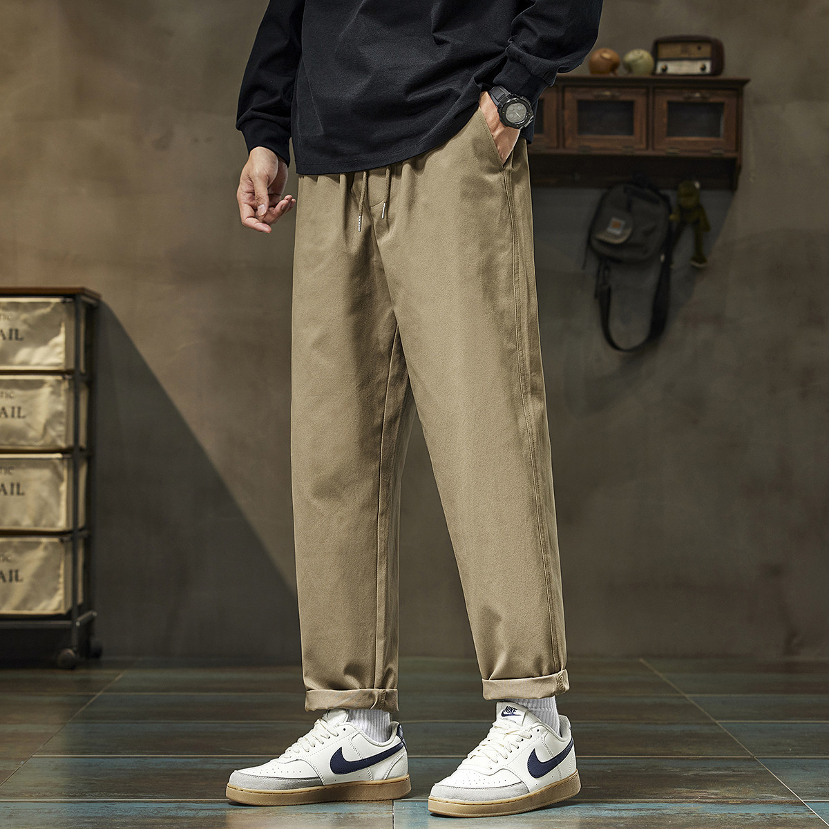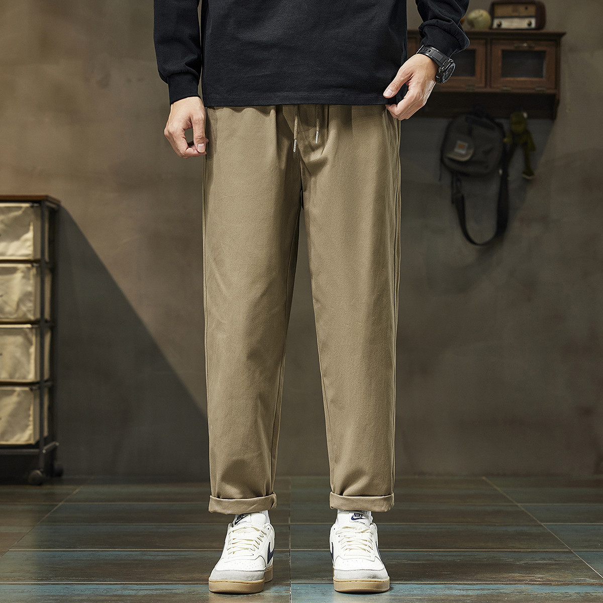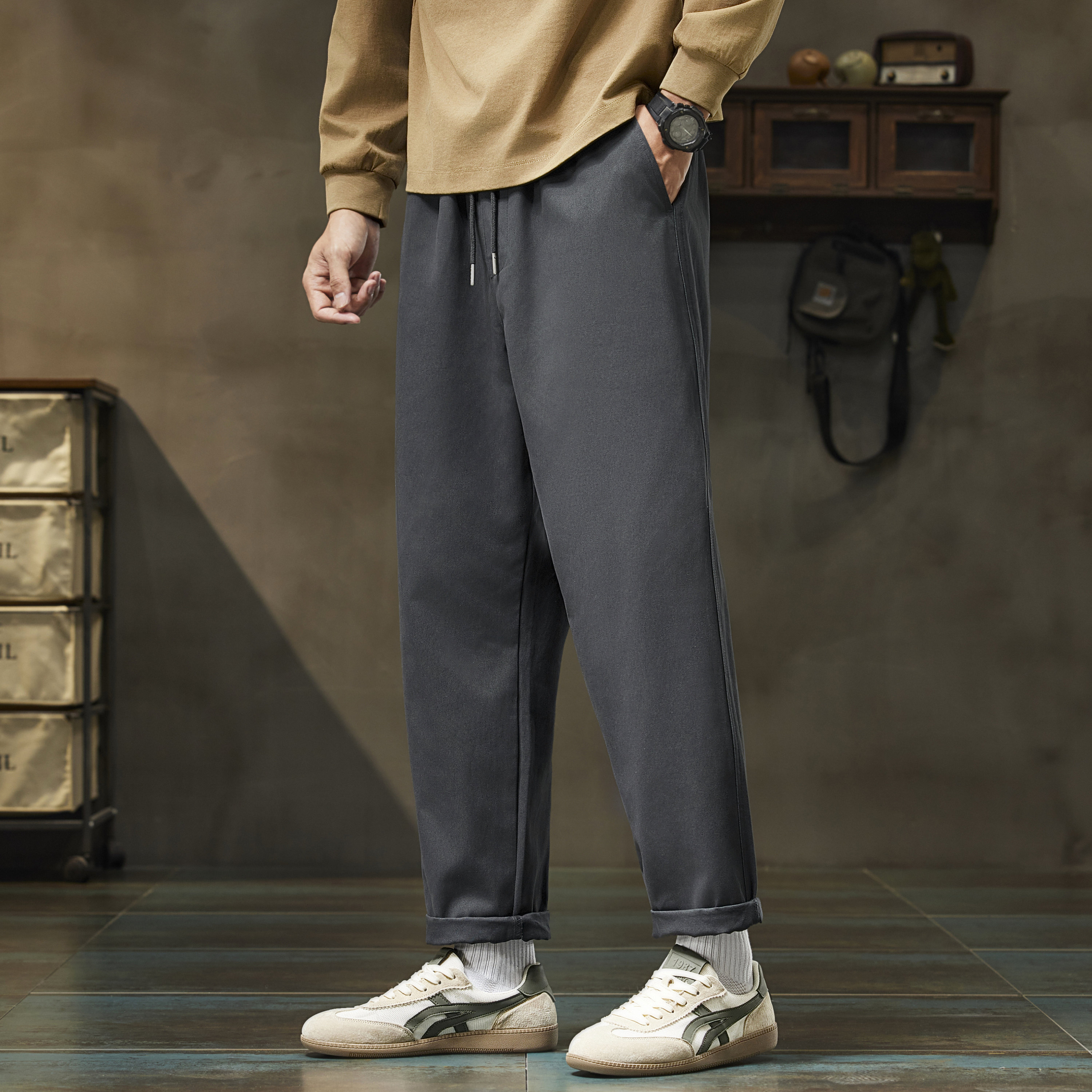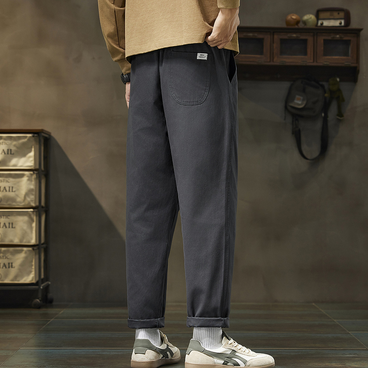 LR MADE 25SS 侧缝打褶 小弯刀垂感 碳磨洗水纯棉休闲廓形长裤