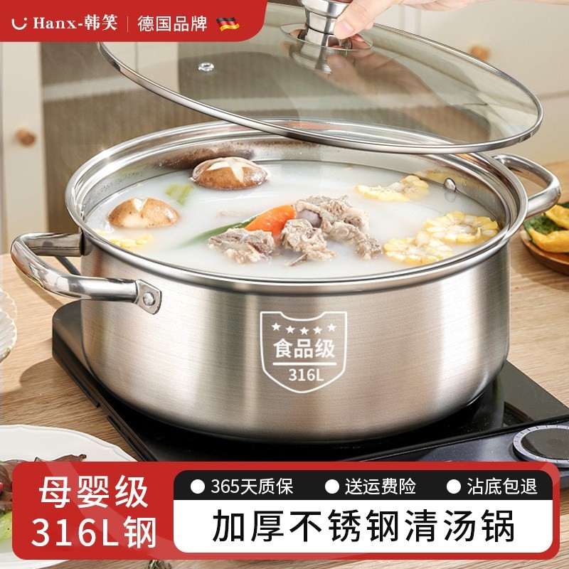 加厚食品级316不锈钢锅矮清汤锅具家用电磁炉专用吃火锅的火锅盆