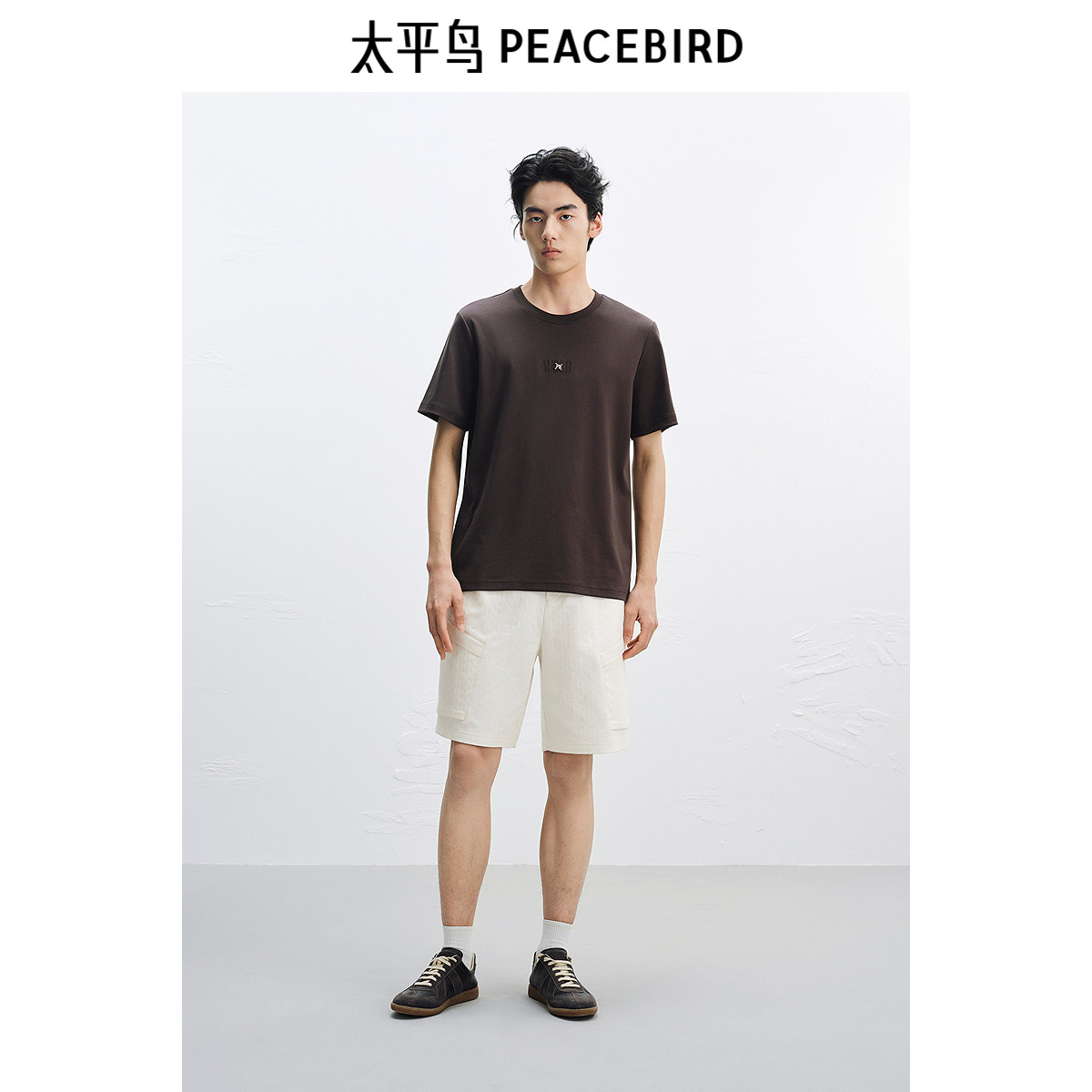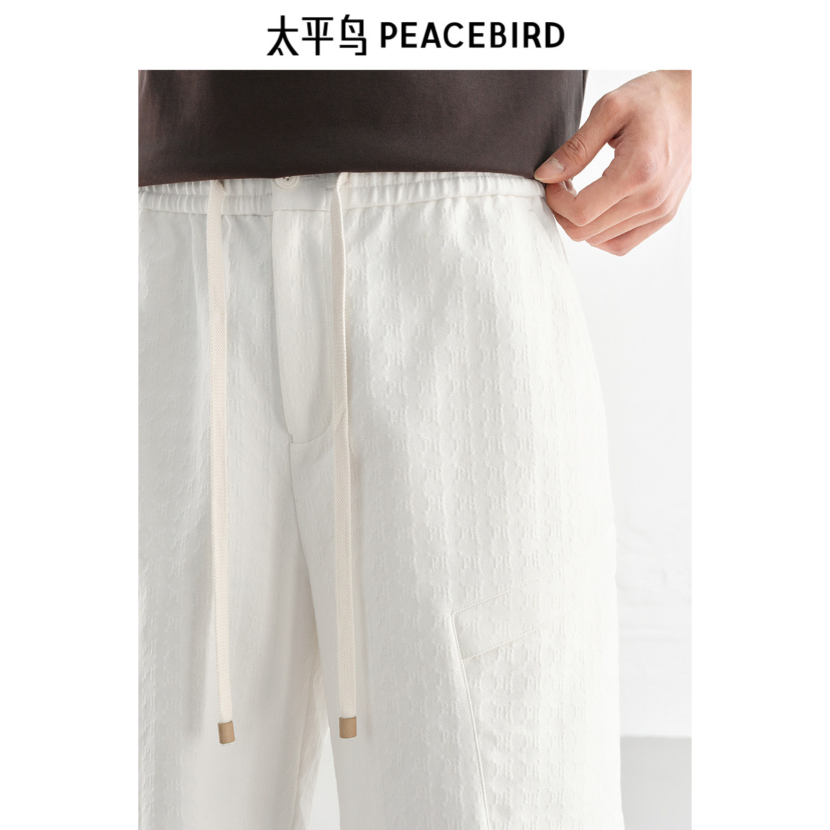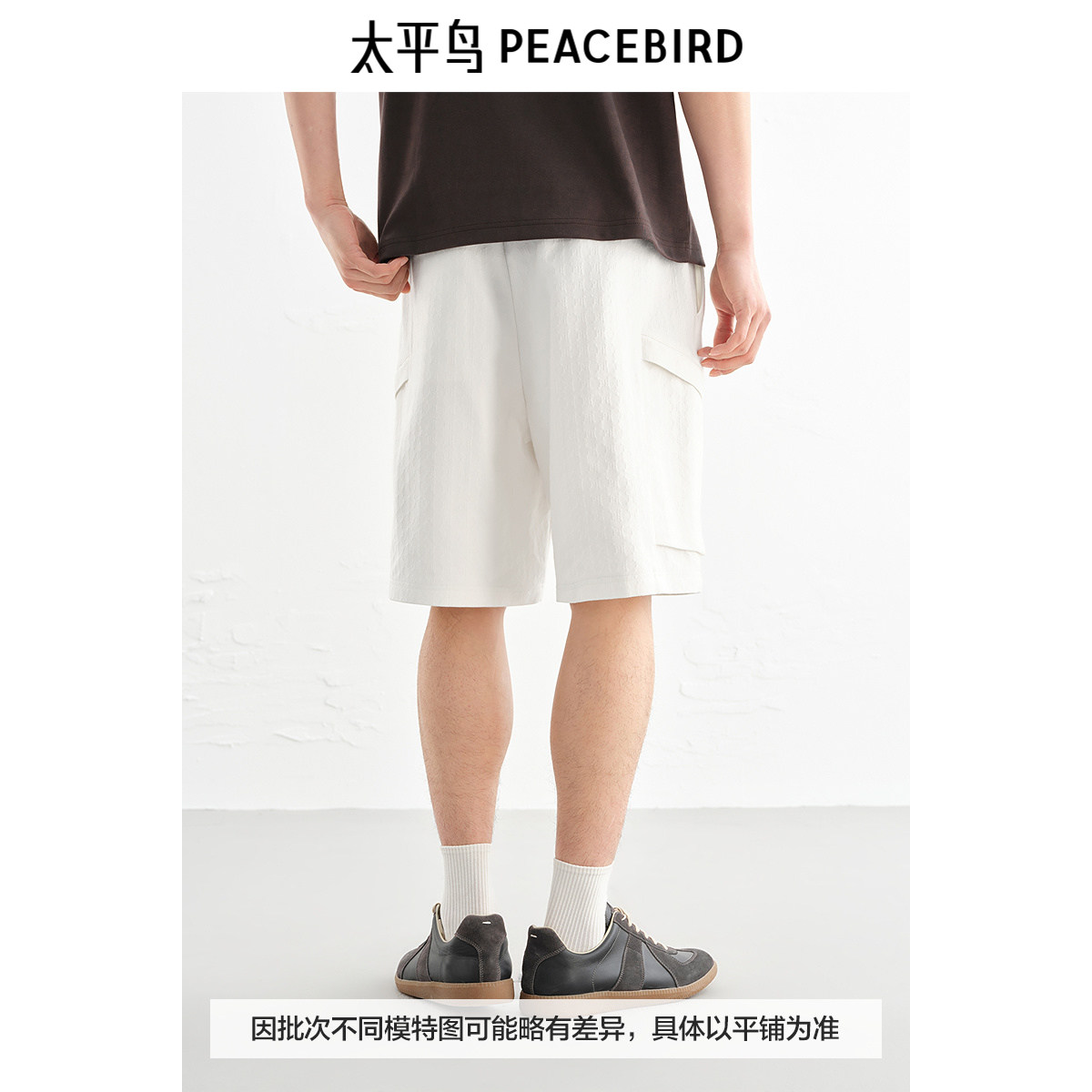 太平鸟男装满版立体提花休闲裤夏中短裤工装贴袋五分运动裤潮