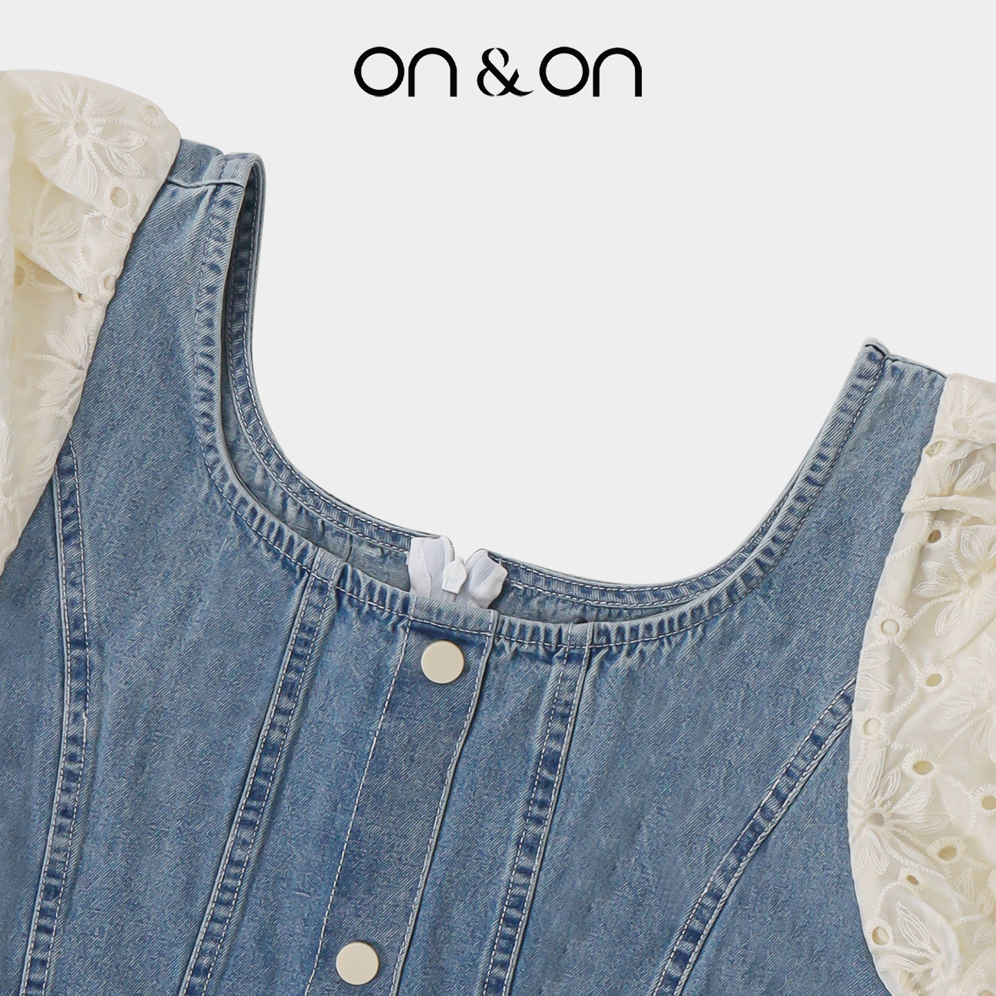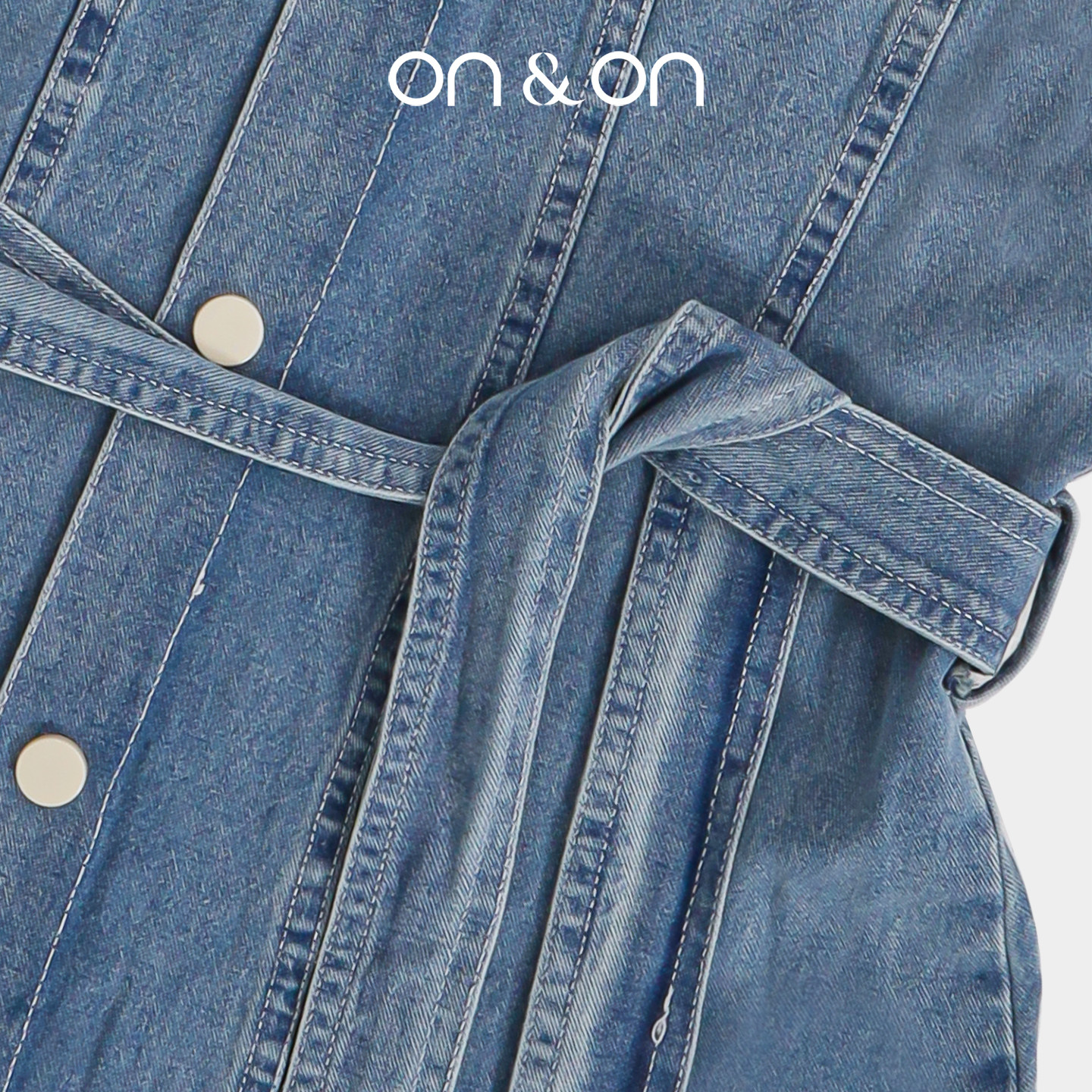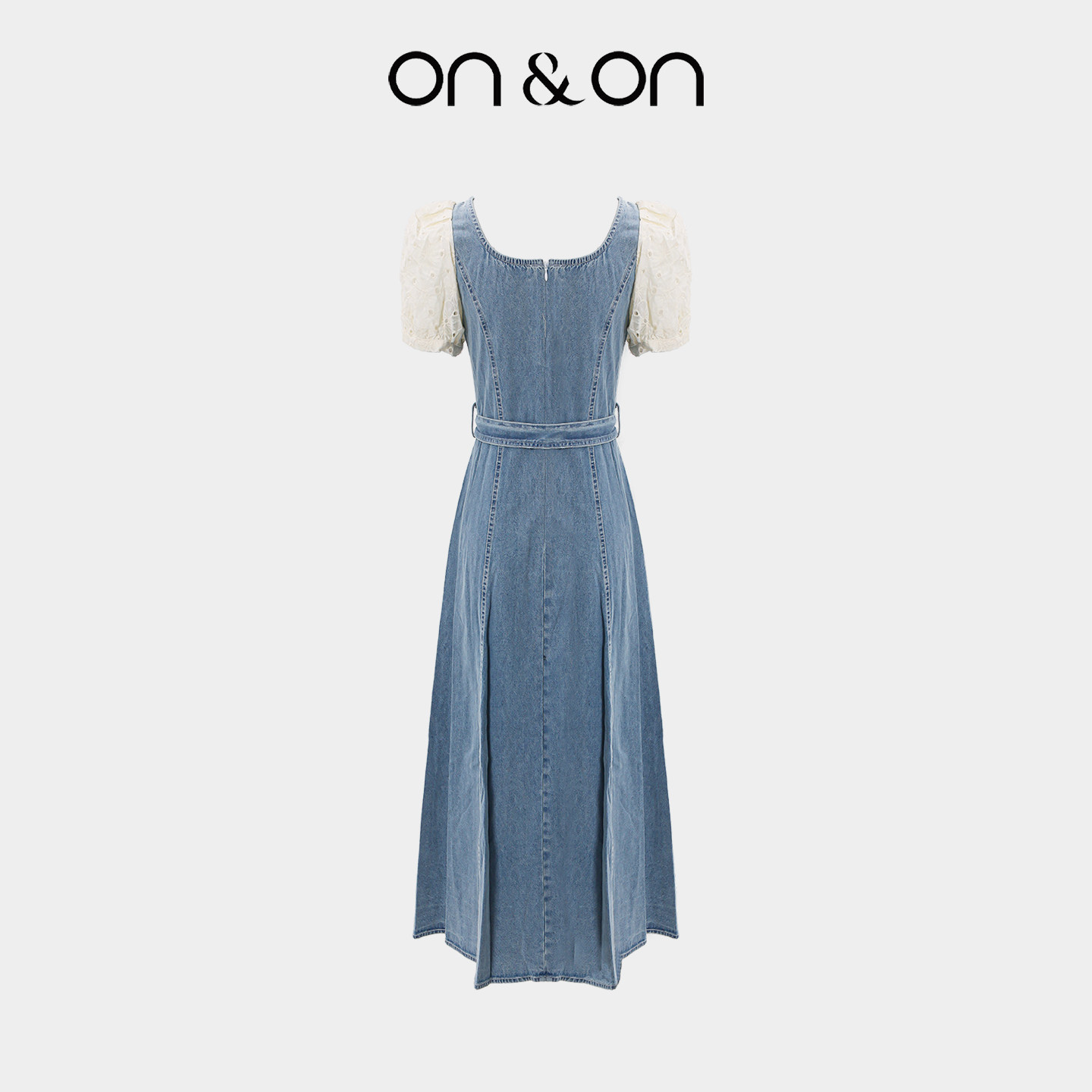 ON&ON/安乃安2025夏季新款法式小方领系带收腰显瘦时尚牛仔长裙