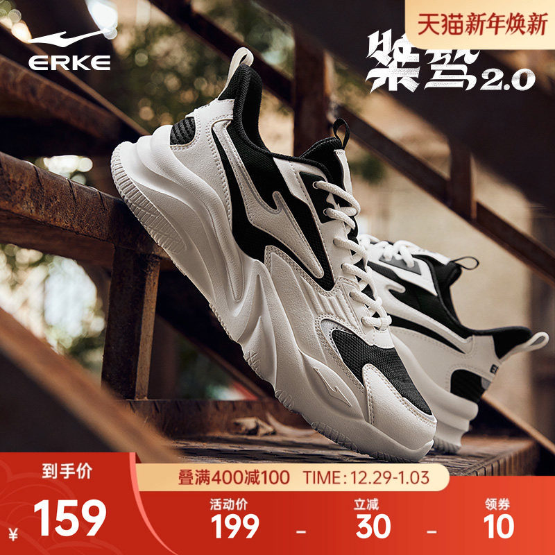 鸿星尔克男鞋运动鞋桀骜皮面秋冬款休闲鞋青少年软底老爹鞋跑步鞋