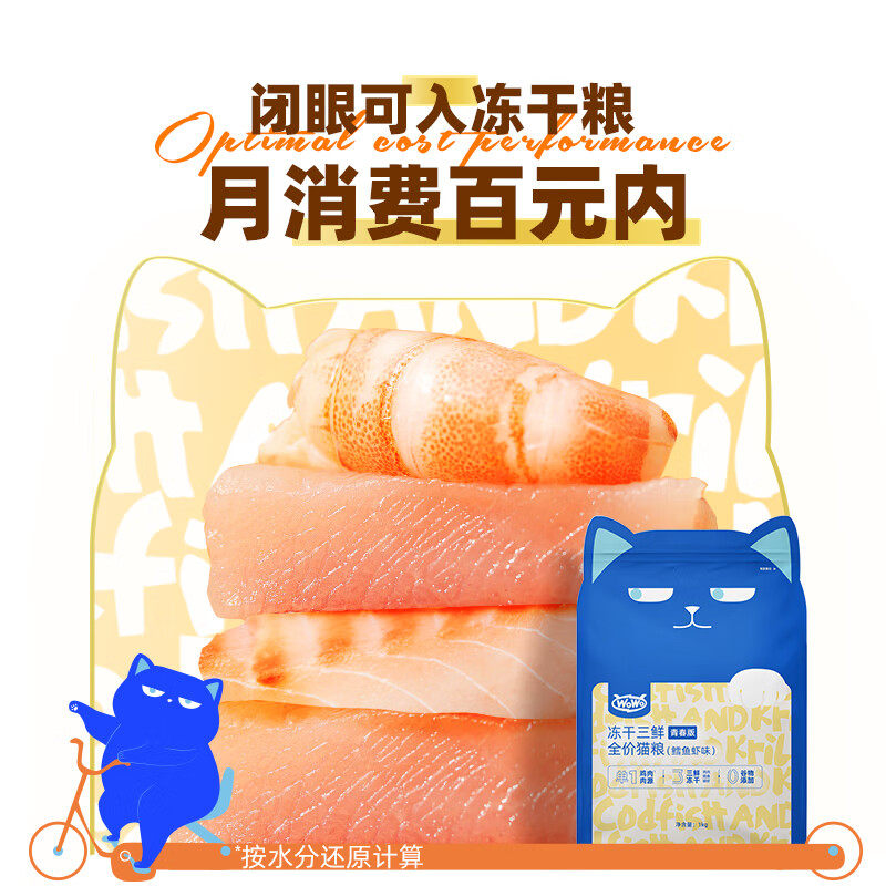 wowo猫粮冻干三鲜全价鳕鱼虾主食营养无谷增肥发腮平价成幼猫专用