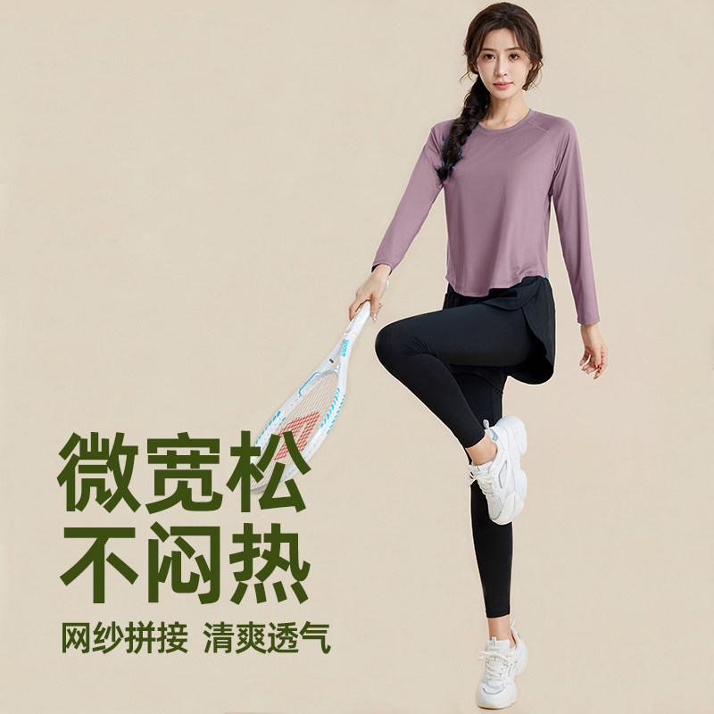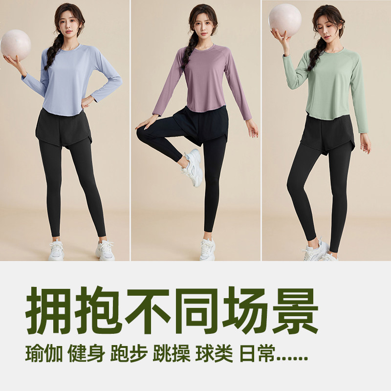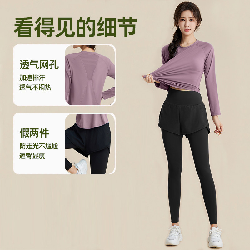 跑步健身服套装速干女秋显瘦紧身修身女款运动专业长袖上衣健身服